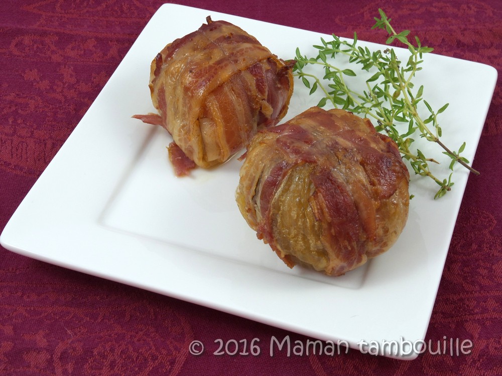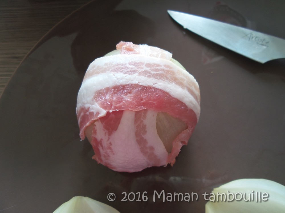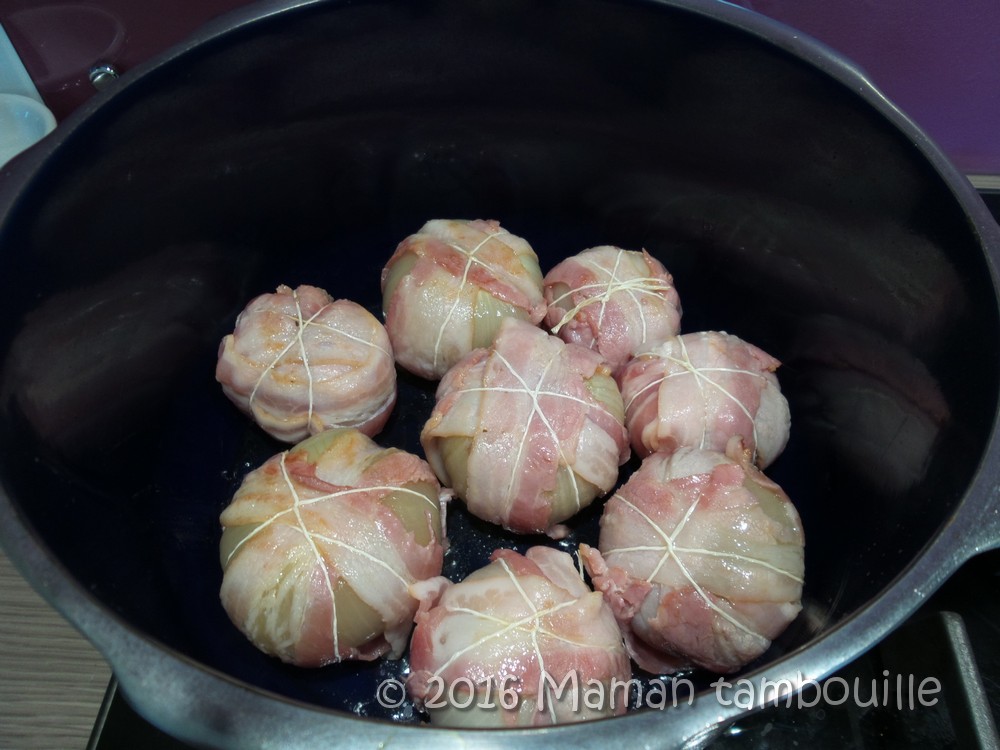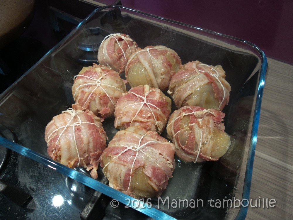 Pour plus de tenue à la cuisson, j’ai ficelé mes boules d’oignons.