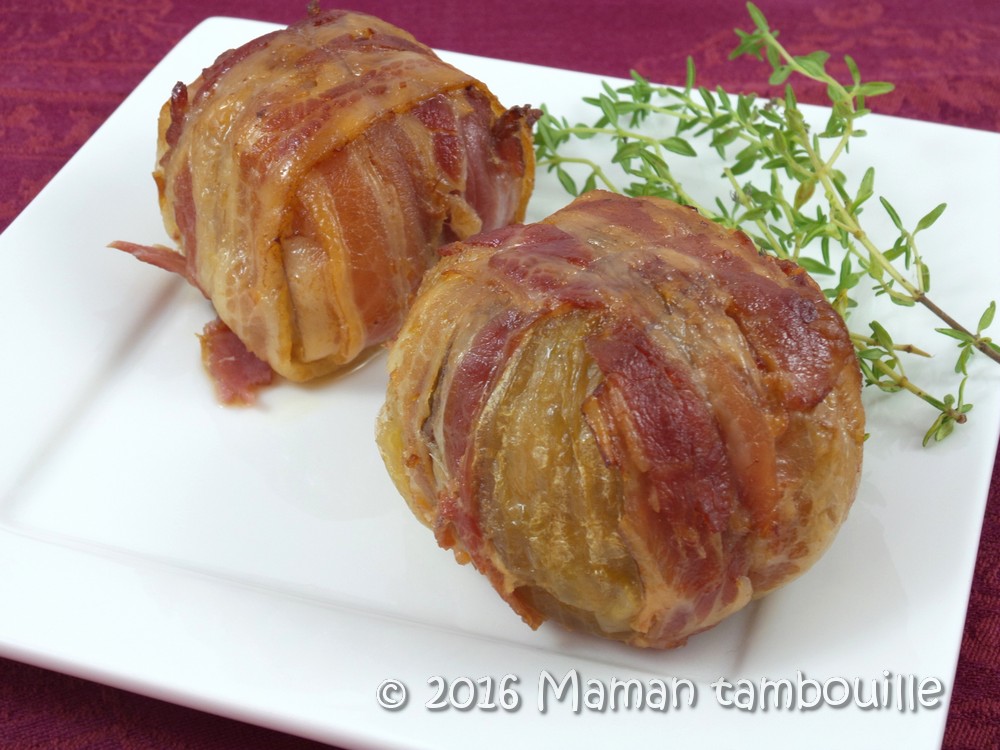 Oh la petite bombe culinaire ! Une grosse boulette d’oignon garnie de boeuf haché, d’une bille de mozzarella fondante et entourée de poitrine fumée. Ça vous donne envie ? C’est normal ! Ce plat est un régal dont nous nous sommes tous délecté. Même mini pouce qui n’aime pas trop les oignons l’a mangé sans broncher !