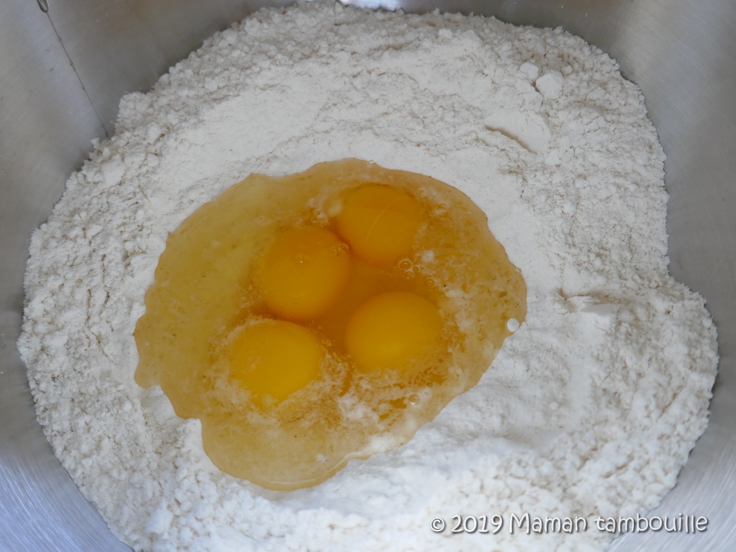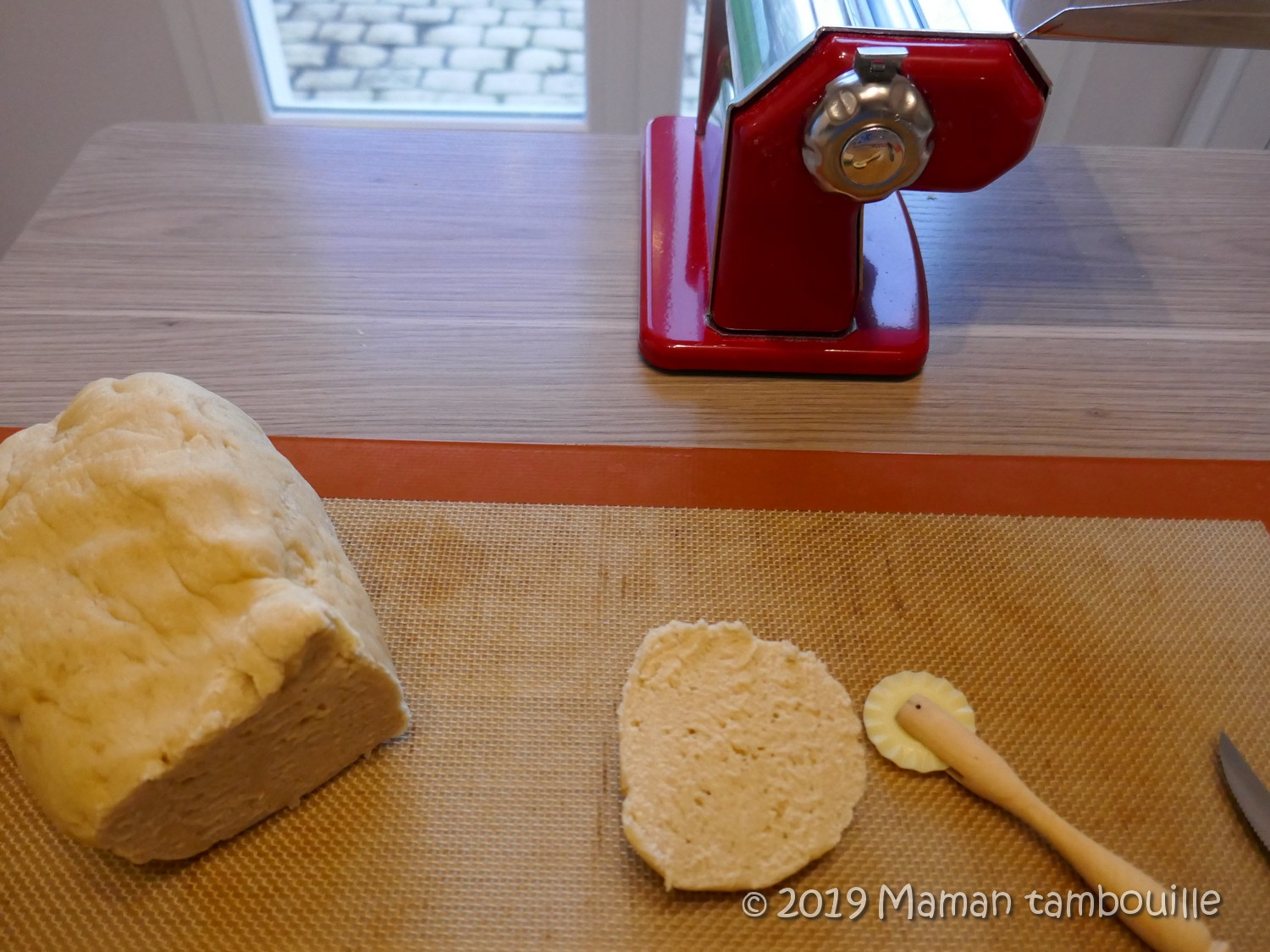 Aplatir un peu la pâte puis la passer dans le laminoir cran 4.