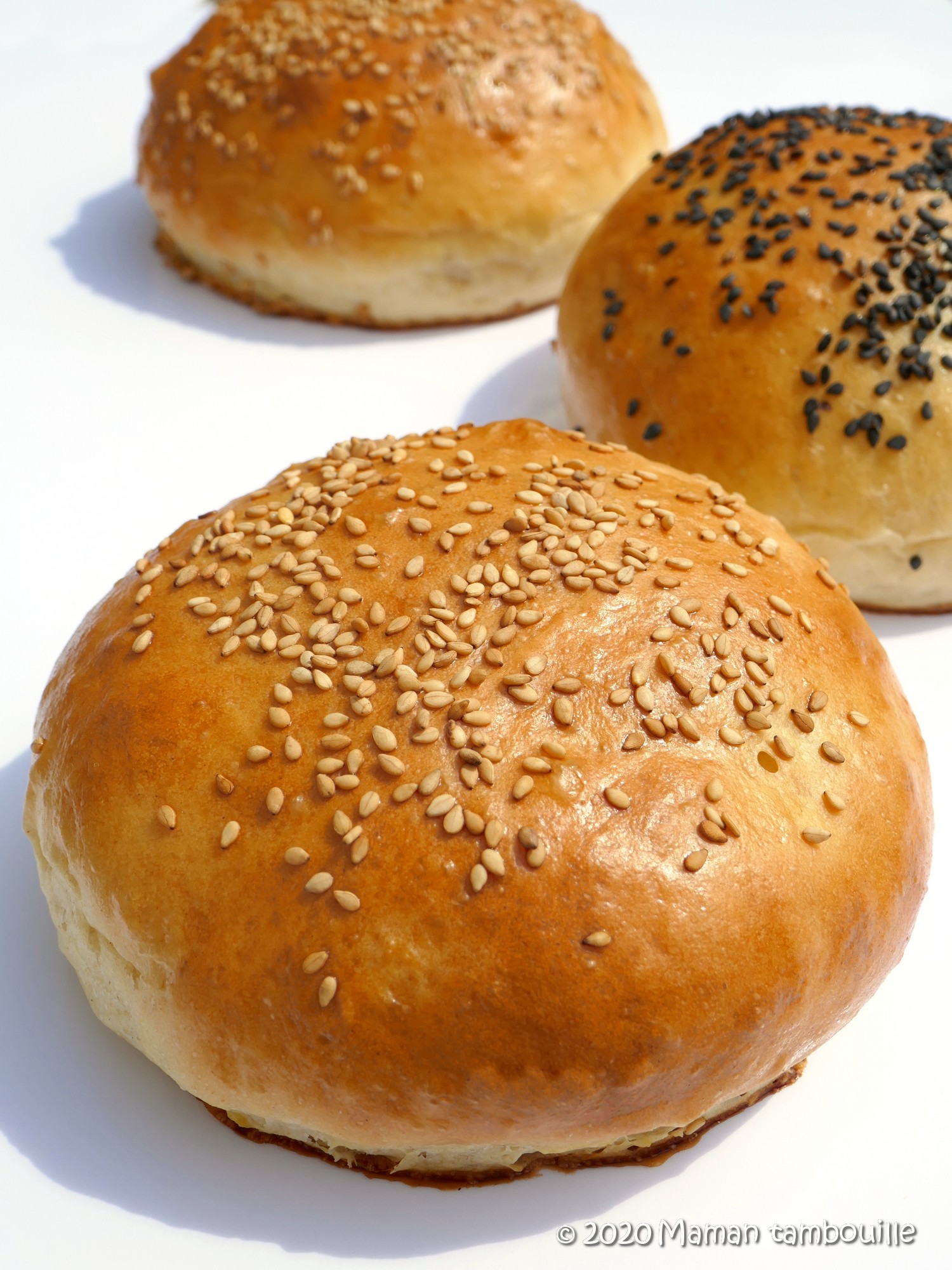 Alors là, je crois bien que je n’achèterai plus de pains à burger industriels ! Cette recette donne de beaux pains bien gonflés et moelleux à souhait. En plus, c’est facile et finalement assez rapide à faire. J’adore !!!