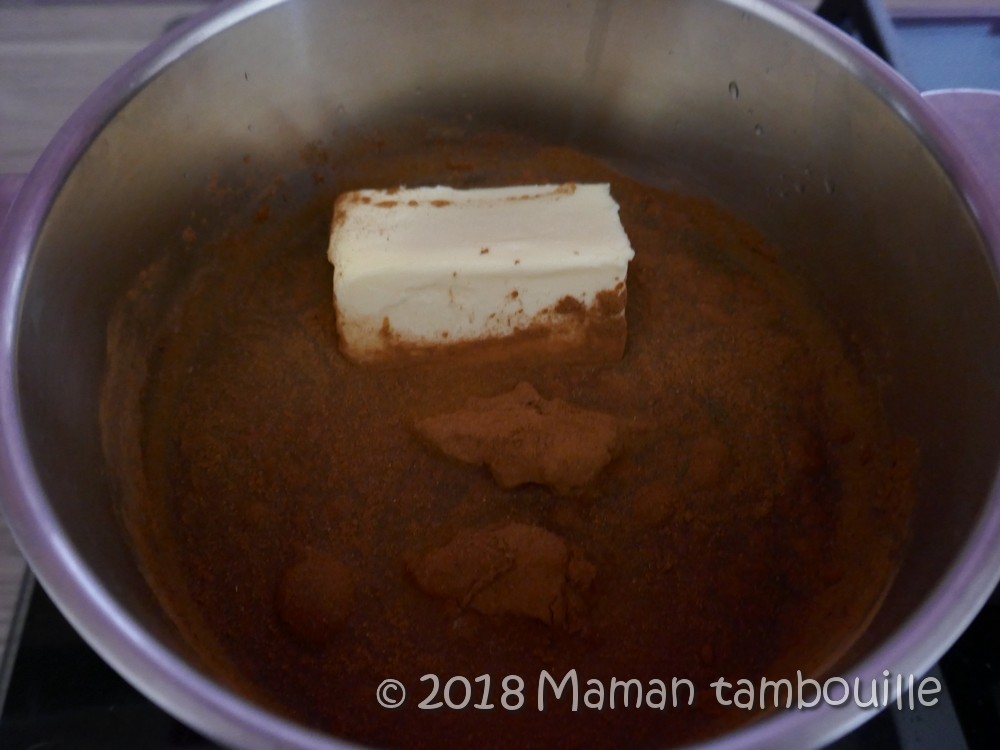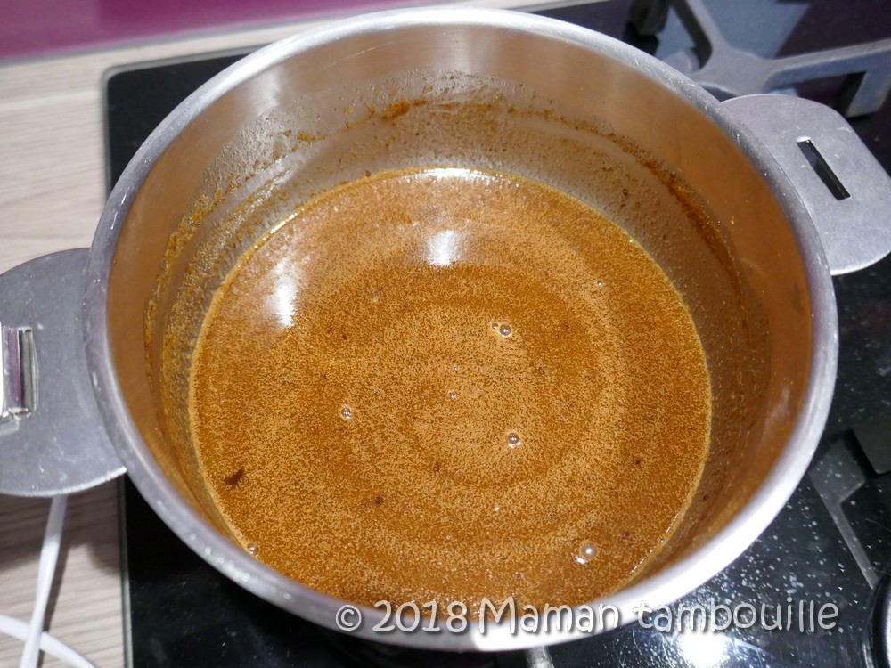 Dans une casserole, mettre l’eau, le sucre, le beurre, le miel et les épices. Chauffer doucement pour faire fondre le beurre.