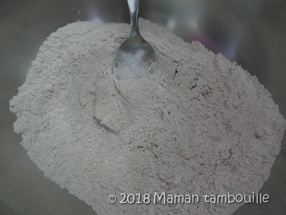 Dans un saladier, mélanger les farine, le sel et le bicarbonate.