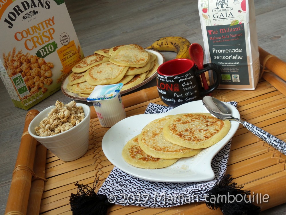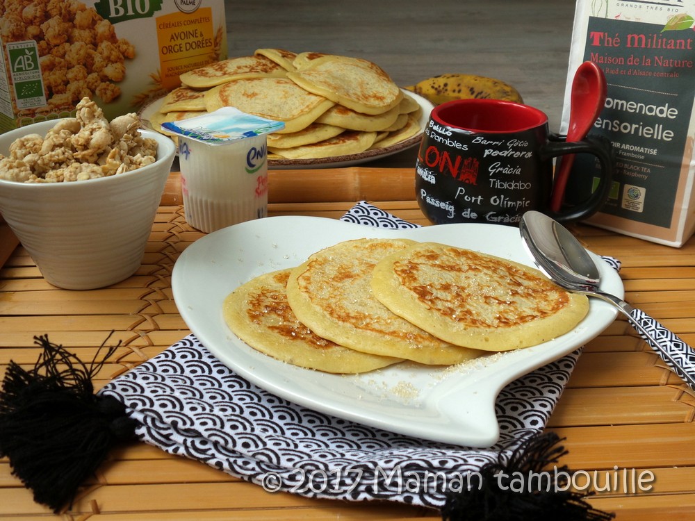Les pancakes, ça plaît toujours aux enfants ! Quant à cette version à la banane, je l’ai adoré. Les pancakes sont moelleux et justes parfumés de banane. Peu gras et peu sucré, voilà un goûter plaisir et de quoi bien démarrer la journée avec un petit déjeuner gourmand.