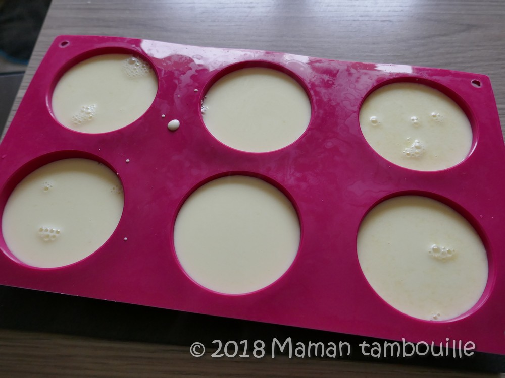 Remplir les moules demi sphères puis placer 6h au frais.
