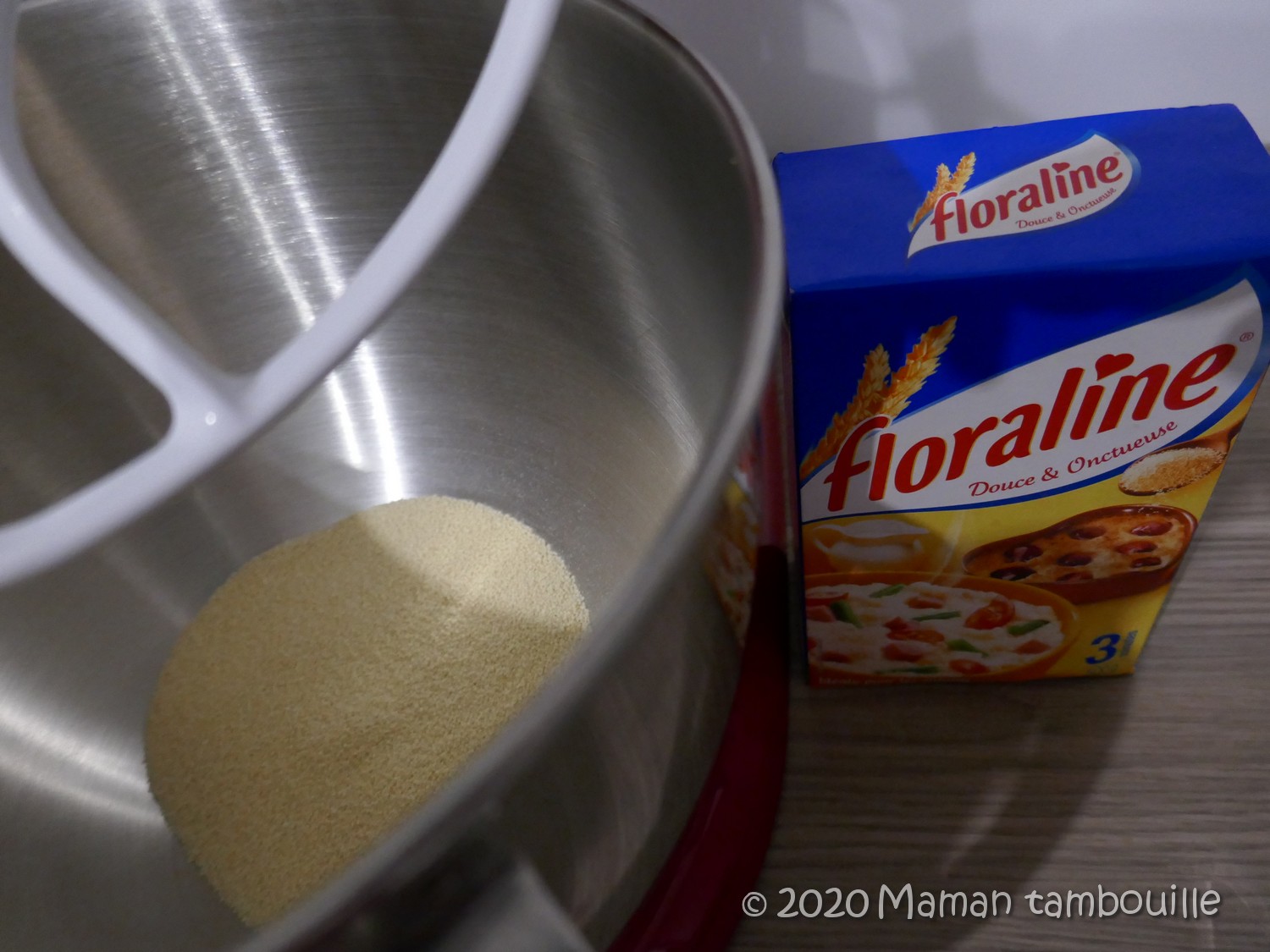 Dans le bol d’un robot avec le fouet plat, mettre la floraline.