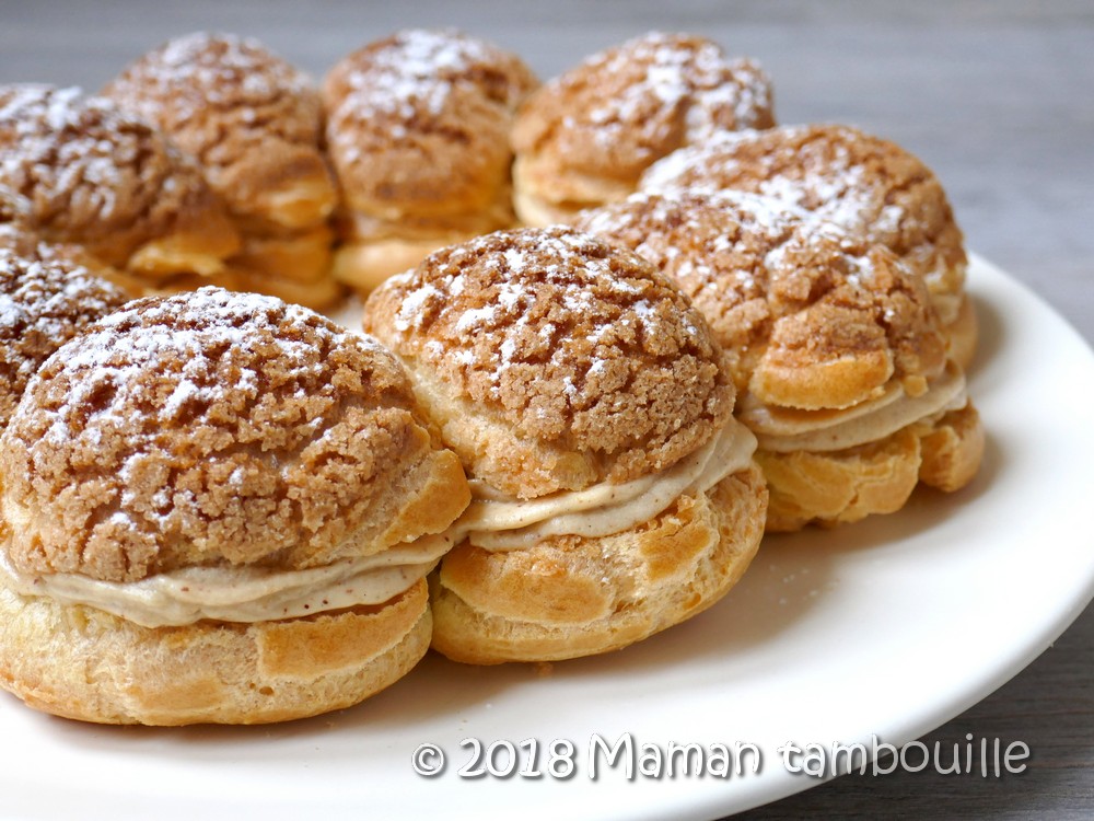 Edit de juin 2018: Avec cette quantité de pâte, j’ai fait cette fois une couronne de 10 gros choux + 2 paris brest individuels de 4 minis choux chacun (comme celui sur la photo).