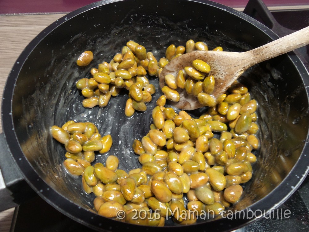 Couper le feu puis ajouter les pistaches. Bien mélanger avec une cuillère en bois. Ça va blanchir et s’assécher, c’est normal.