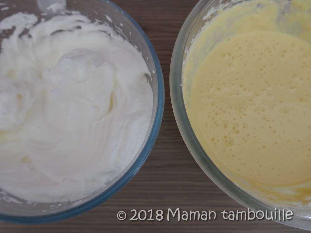 Dans un saladier, mettre les jaunes d’œufs et mettre les blancs dans un autre.