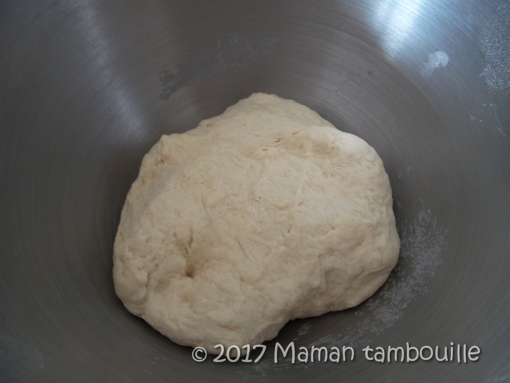 Mettre le robot en marche et pétrir 10 min. Couvrir d’un torchon et laisser lever 1h dans un endroit tiède.
