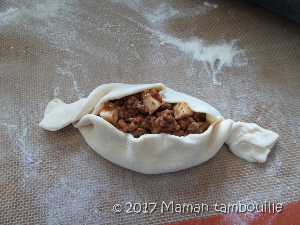 Déposer 2 cuillères de farce au milieu.