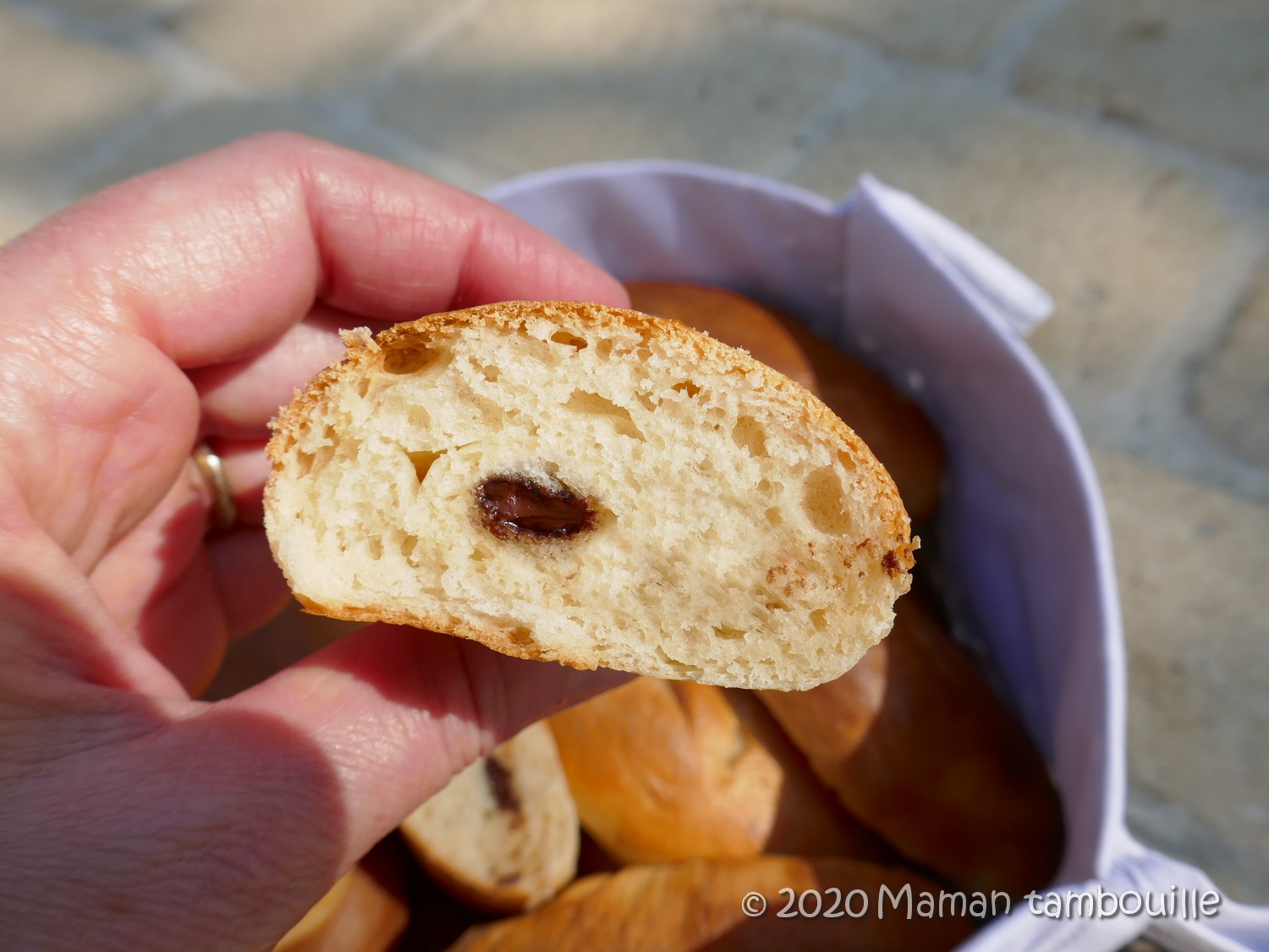 Du coup, en plus de faire mon pain quotidien (qui a d’ailleurs énormément de succès à la maison), j’en ai profité pour faire des petits pains au lait type « pitch », avec la fameuse barre de chocolat au milieu. Parce ce que, en même temps que la levure, j’ai aussi acheté des bâtons de chocolat type pro pour mettre dans les pains au chocolat et, j’en ai une quantité aussi astronomique que la levure avec mes 500 bâtons de chocolat !