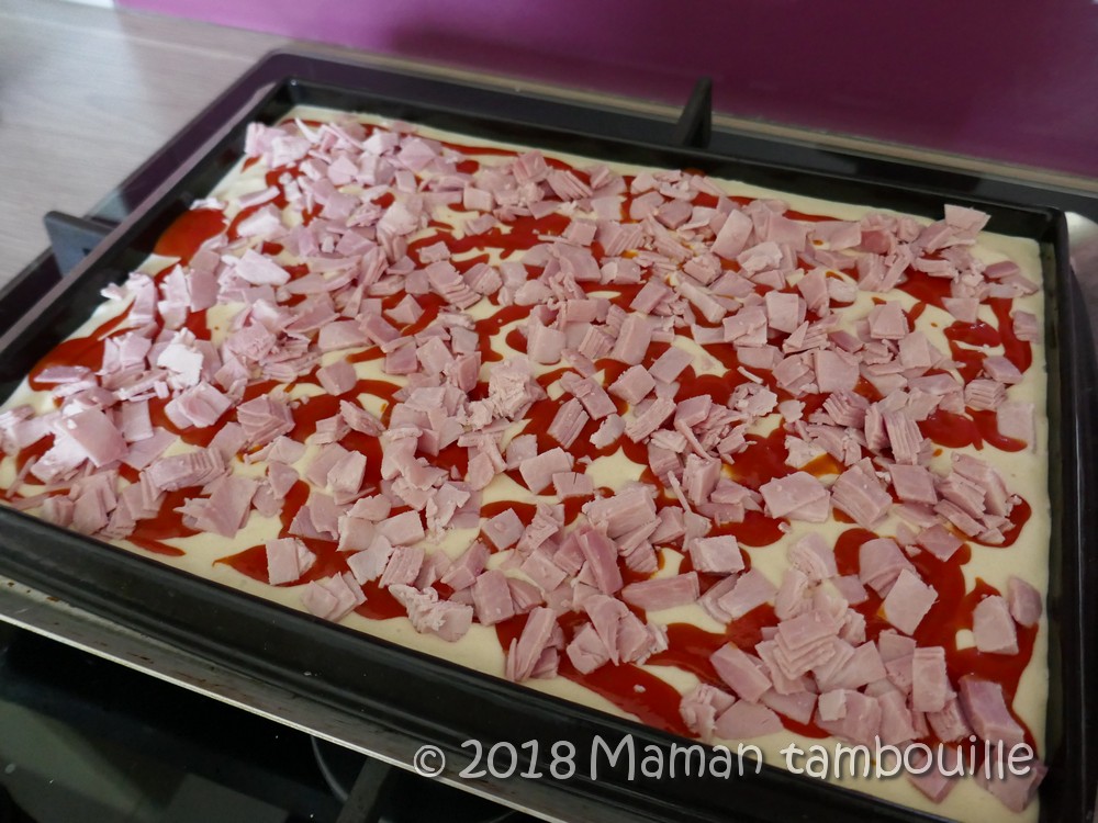 Répartir le jambon.