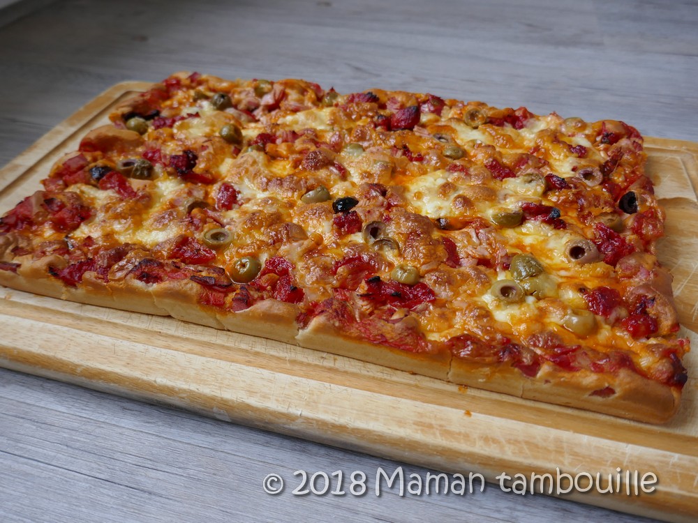 Voilà une recette que j’ai envie de tester depuis des mois: la pizza à pâte liquide ! Mais quesako ? C’est une « pizza » express où la pâte n’a pas besoin de lever, où on n’a pas besoin de pétrir et encore moins d’étaler. Bref, une pizza impro prête en 2 temps 3 mouvements. Bon, je mets des guillemets à « pizza » car les amateurs de pizza à pâte fine et croustillante ne vont pas s’y retrouver. Ici, on est plus dans une sorte de « pâte à cake ou à brioche » qui est épaisse et moelleuse. Le résultat final n’est pas comme une vraie pizza mais c’est tout de même un bon compromis. Ensuite, tout est dans la garniture que l’on choisit. Il la faut généreuse et gourmande.