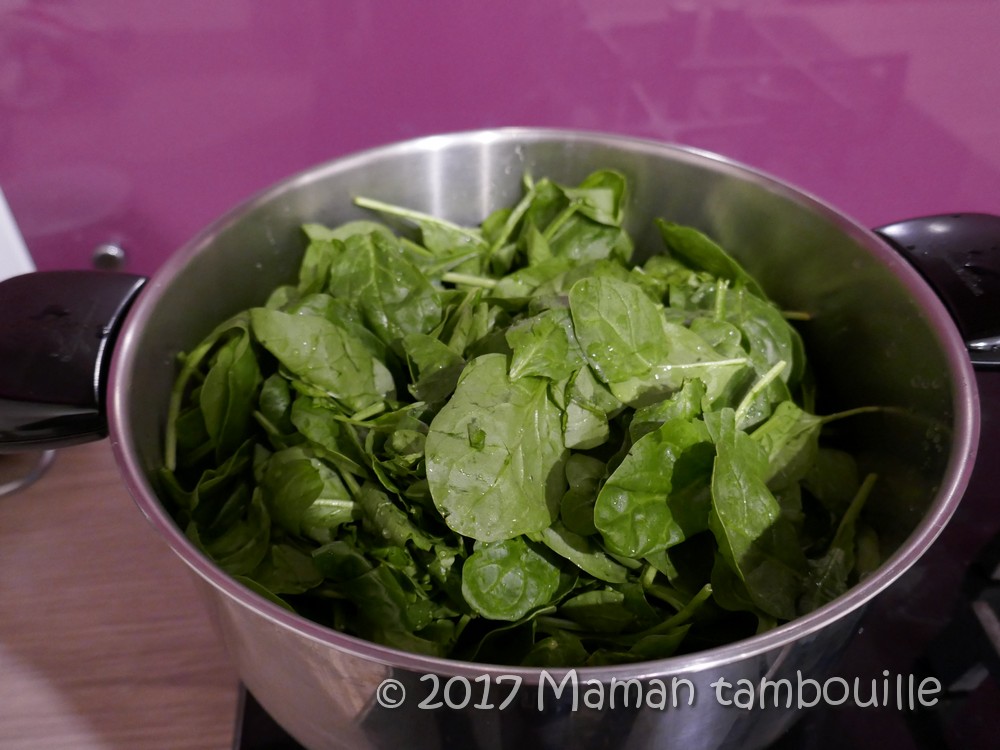 Faire réduire les épinards dans une cocotte.