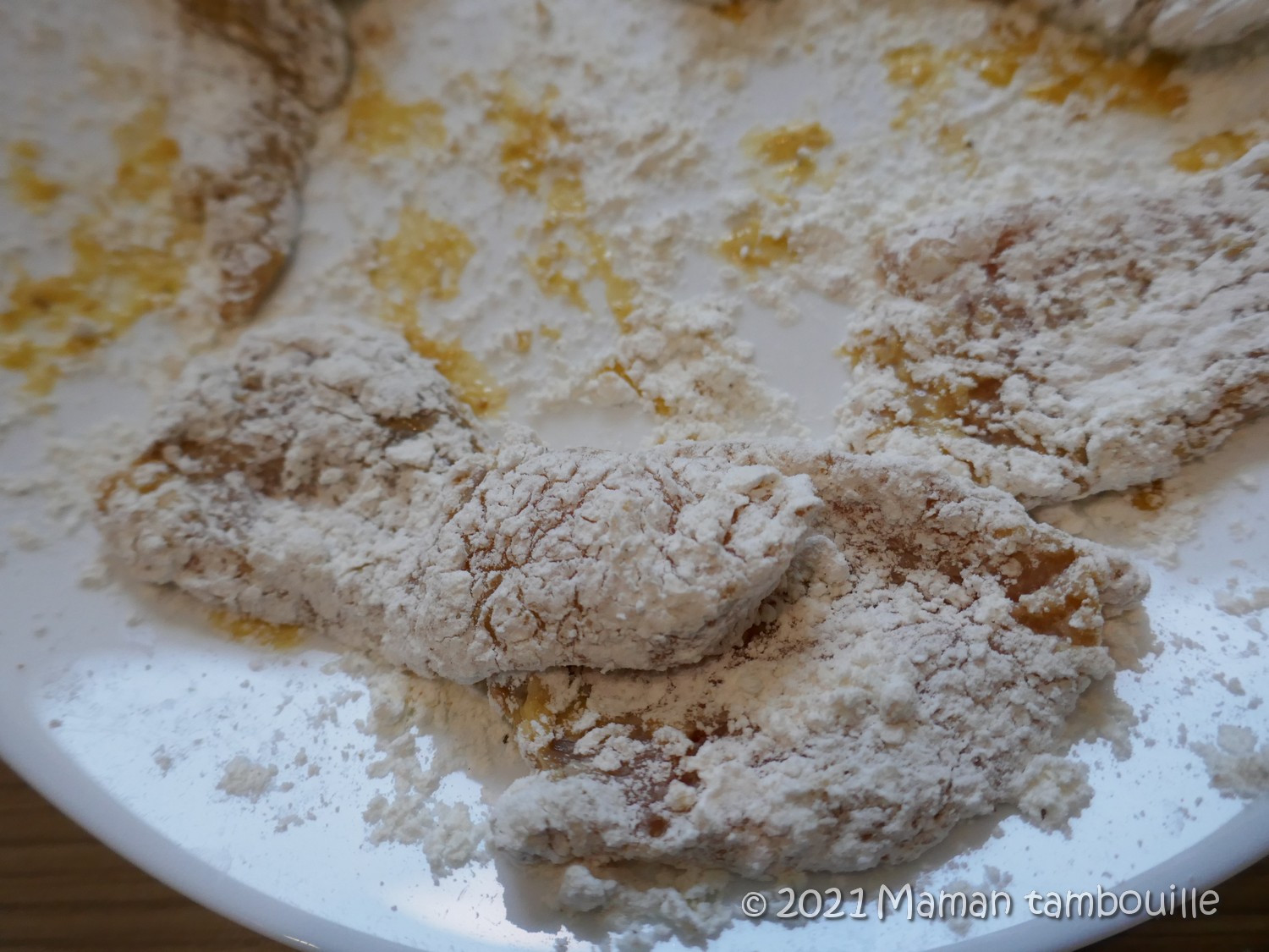 Jusqu’au jour où j’ai découvert la panure farine/maïzena ! Mais comment est-ce possible un truc aussi simple ? Pourquoi on n’apprend pas ça à l’école ? Tant d’années perdues alors que c’était aussi facile ! Et oui, il suffisait juste de faire une panure oeuf puis farine/maïzena et le tour est joué ! Facile, rapide, efficace, on n’en demande pas plus !