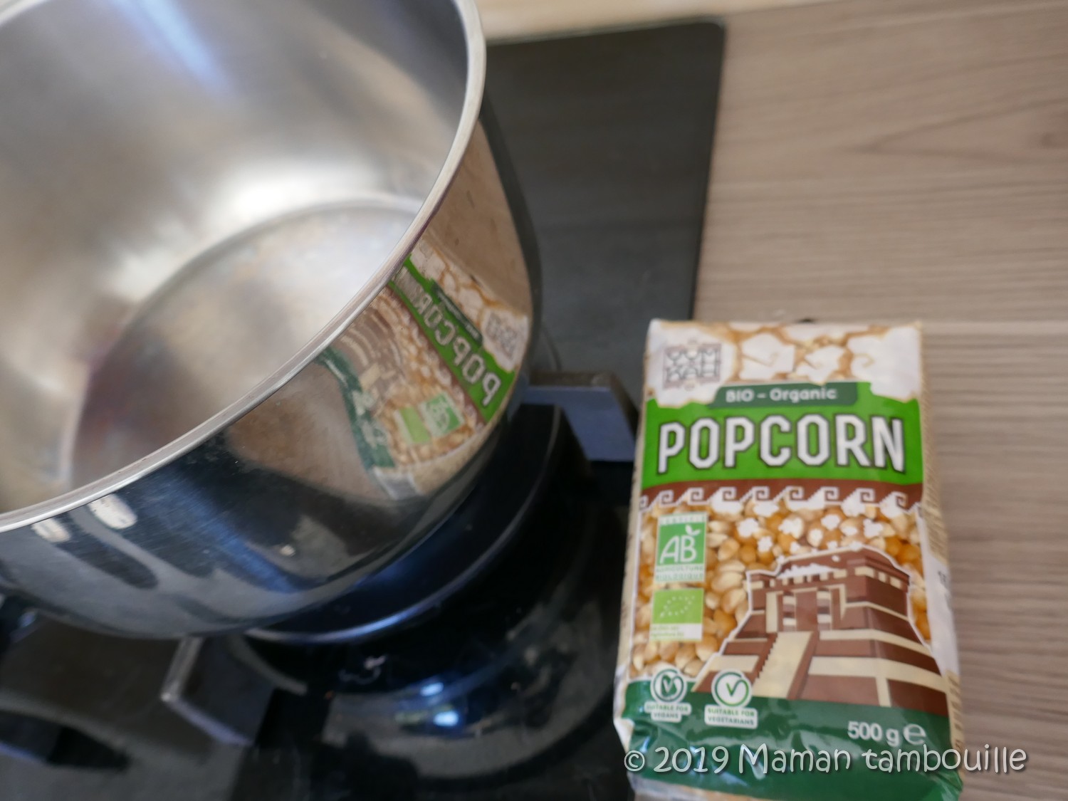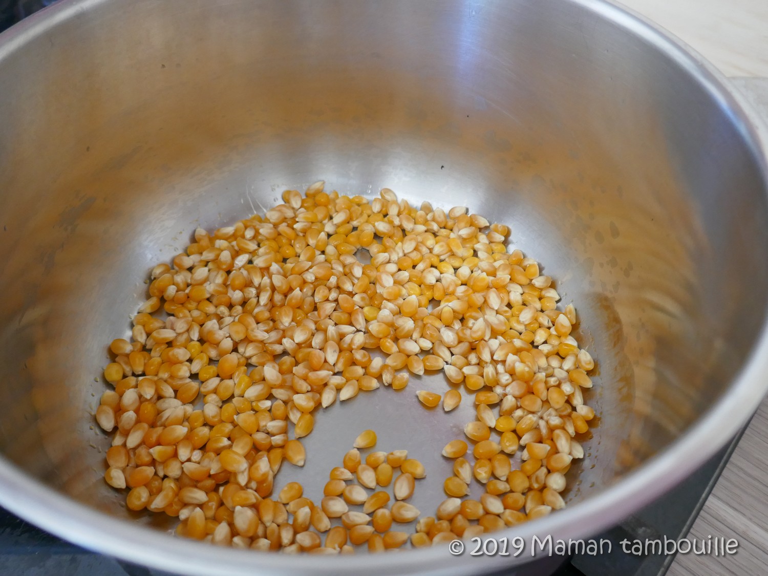 Préparer les pop corn dans une casserole avec un peu d’huile.