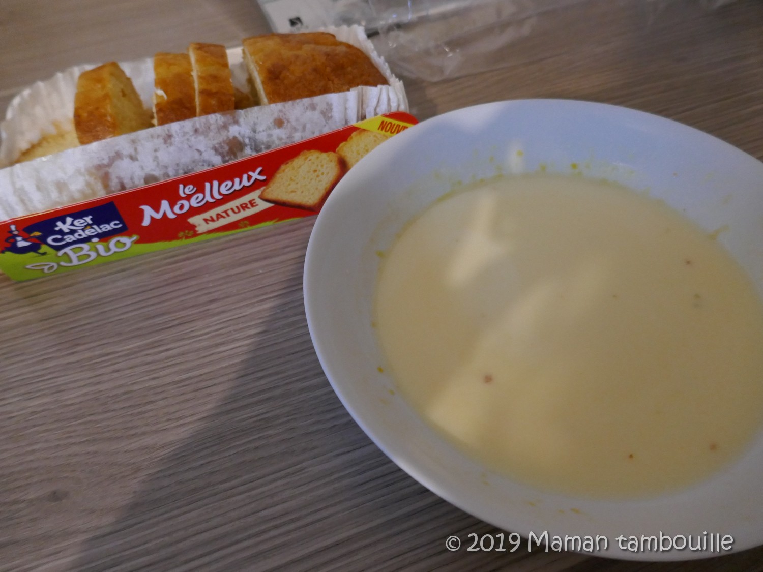 - 6 tranches épaisses de quatre quarts (le quatre quarts Bio Ker Cadélac reçu dans la dernière Degustabox)
