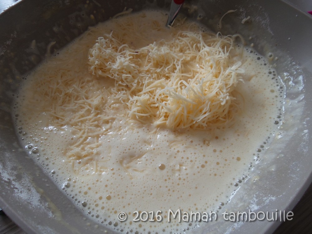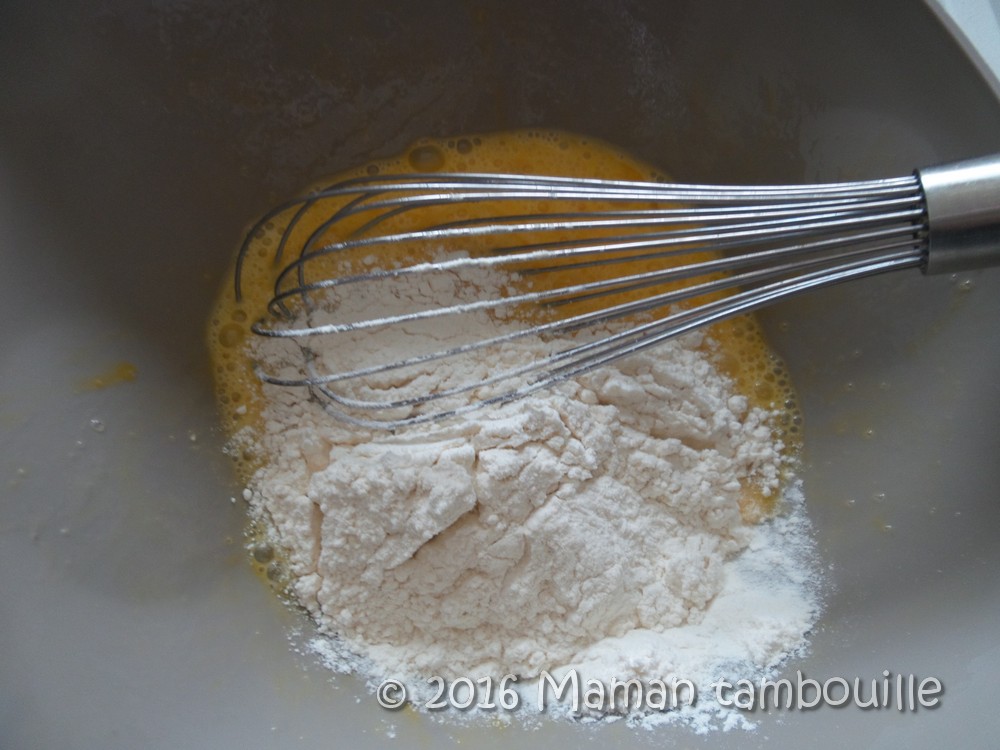Mélanger puis ajouter le lait et fouetter à nouveau.