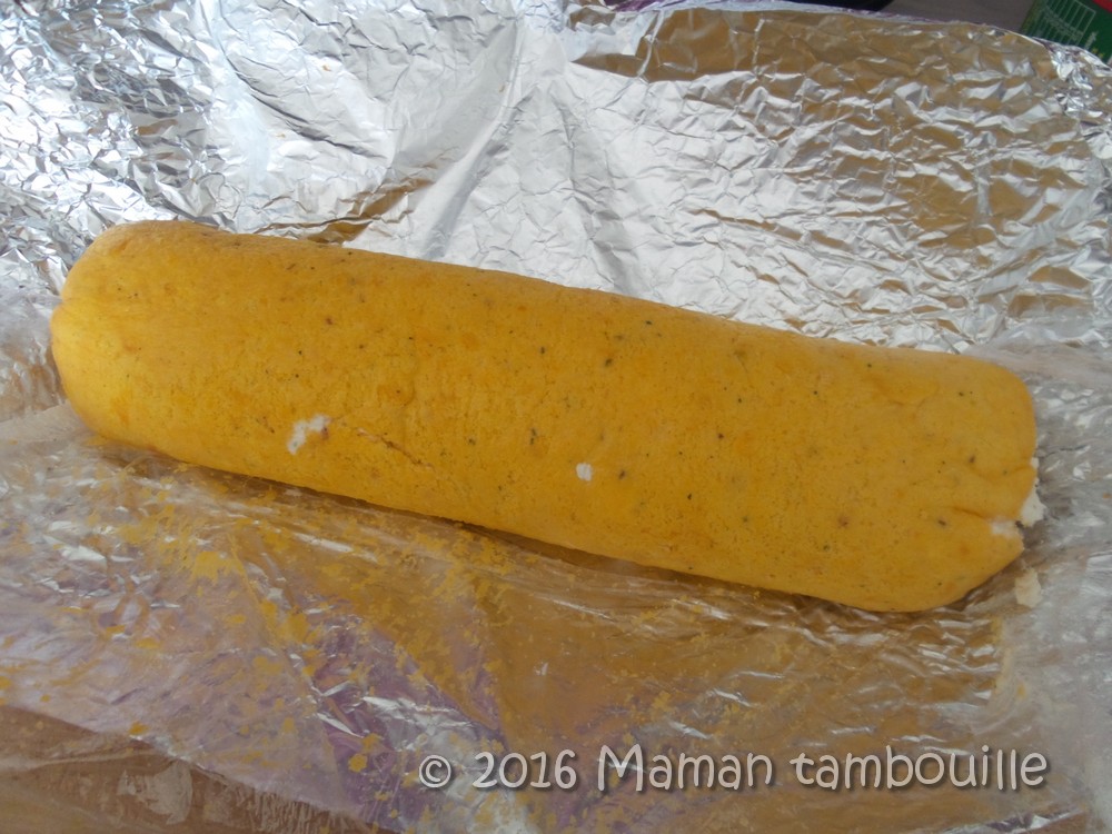 Déposer sur un film étirable et le rouler dans le film. Réserver au moins 2h au frais (une nuit c’est mieux).