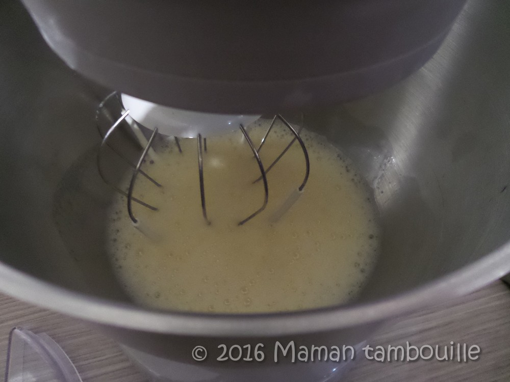 Battre 5 min les 3 œufs entiers.