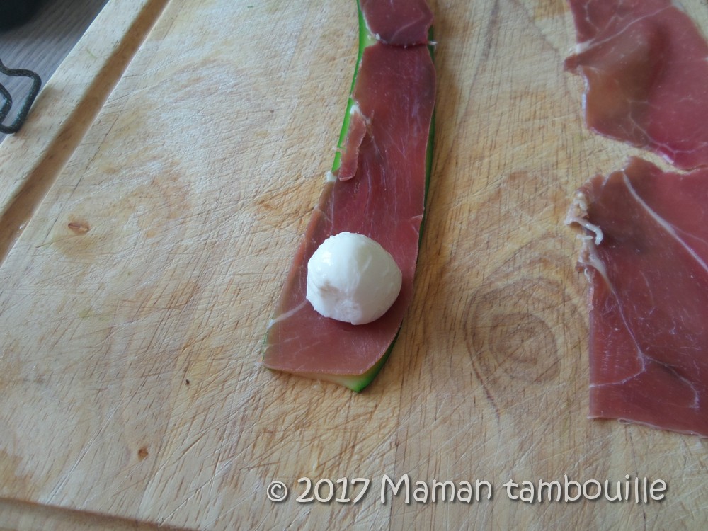 Couper des lamelles de jambon de la taille des courgettes.