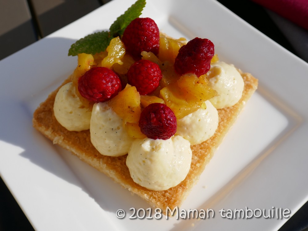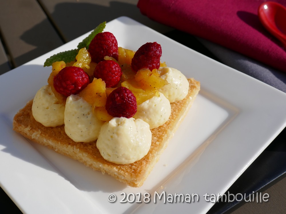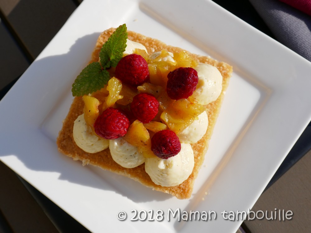 Parfois, quand ça veut pas, ça veut pas ! Ce jour là était un jour SANS ! Je voulais faire un dessert sympa et gourmand pour le midi, à la base, un biscuit surmonté d’un crémeux à la mangue, d’ananas poêlé et de perles de fruits rouges. Alors voilà, j’ai lancé mon crémeux à la mangue. Tout se passait bien jusqu’à ce que j’incorpore la mangue mûre … trop mûre sûrement ! Je goûte le crémeux terminé et là, déception, le goût est vraiment bizarre, on ne trouve pas le goût de mangue si subtile mais plutôt un goût de fruit pourri. Dans le doute, je fais goûter à Papa Tambouille sans lui faire part de mes impressions et j’ai droit à un « moi, je mange pas ça c’est pas bon ! ». Snif, ça confirme, le crémeux est dégueux !