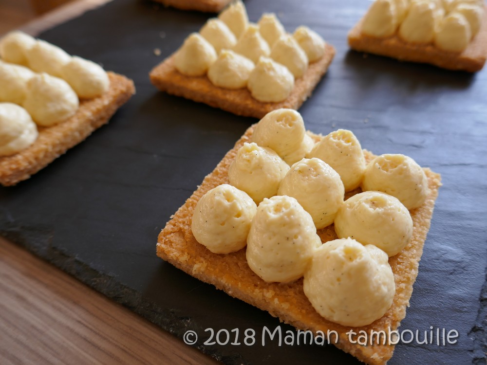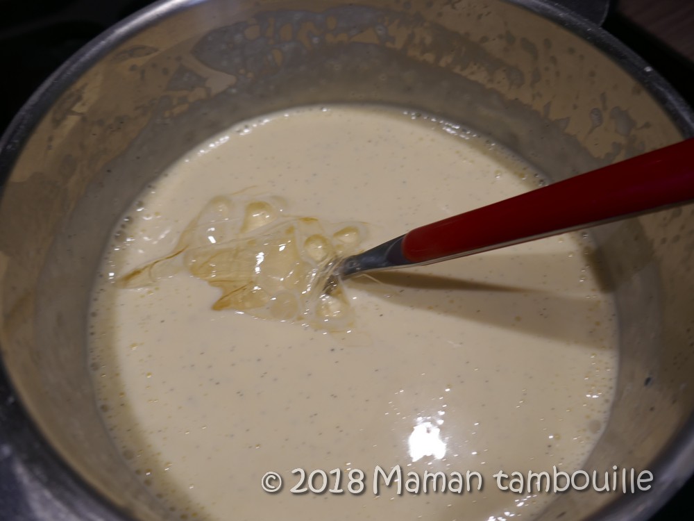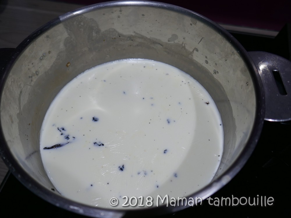 Plan B, j’improvise avec ce que j’ai sous la main et ça se termine par un crémeux chocolat blanc/vanille, une recette que je maîtrise et que j’adore.