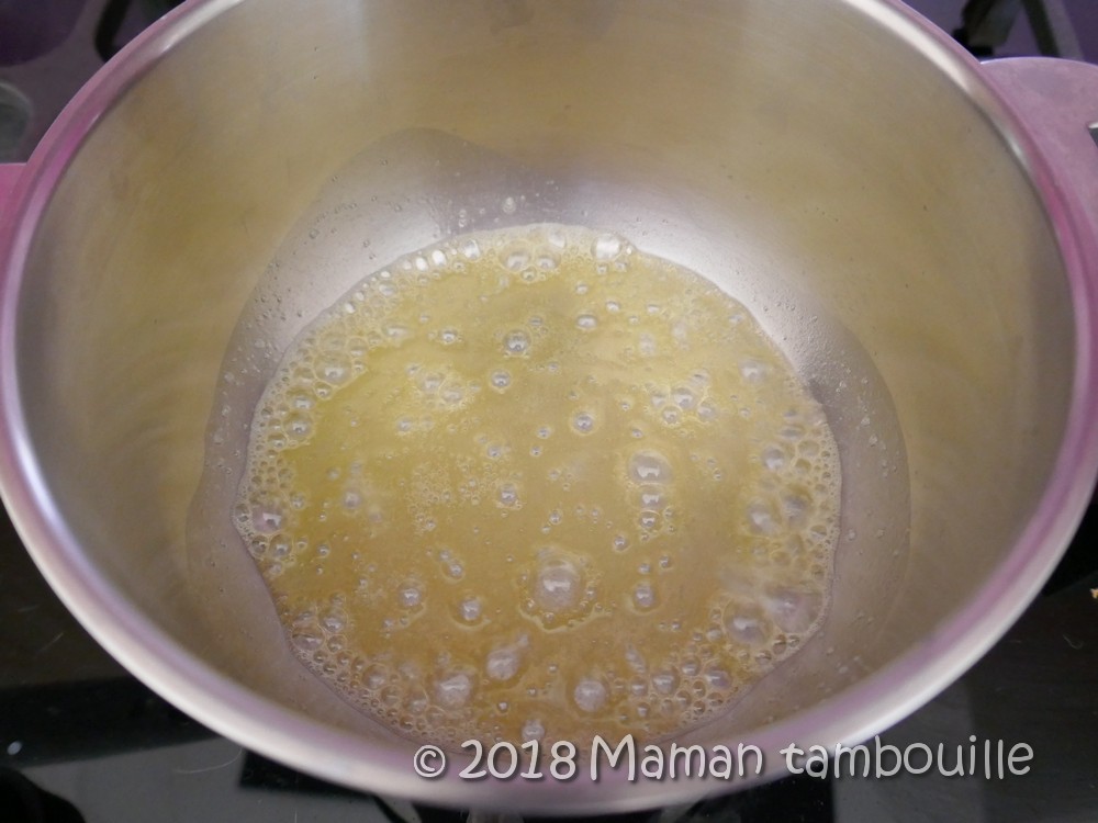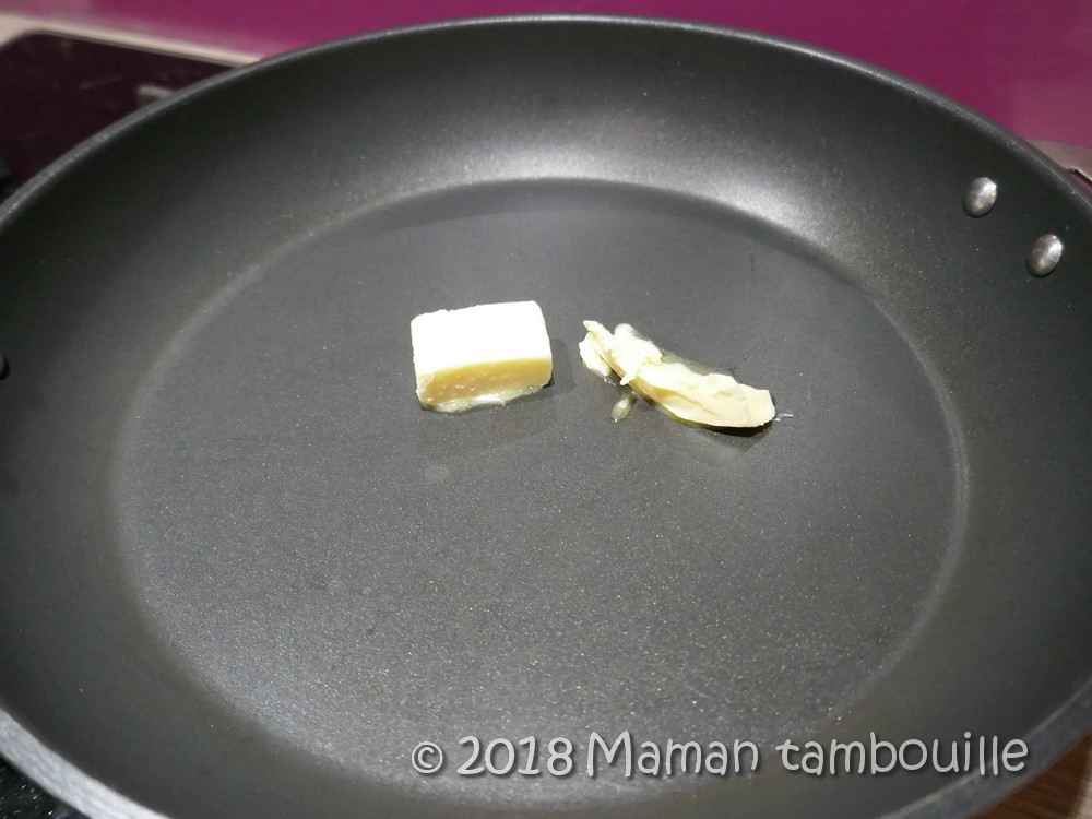 Faire fondre le beurre dans une casserole jusqu’à ce qu’il crépite (il ne doit pas brunir par contre).