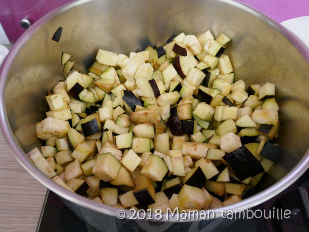 Couper les aubergines en petits dés.