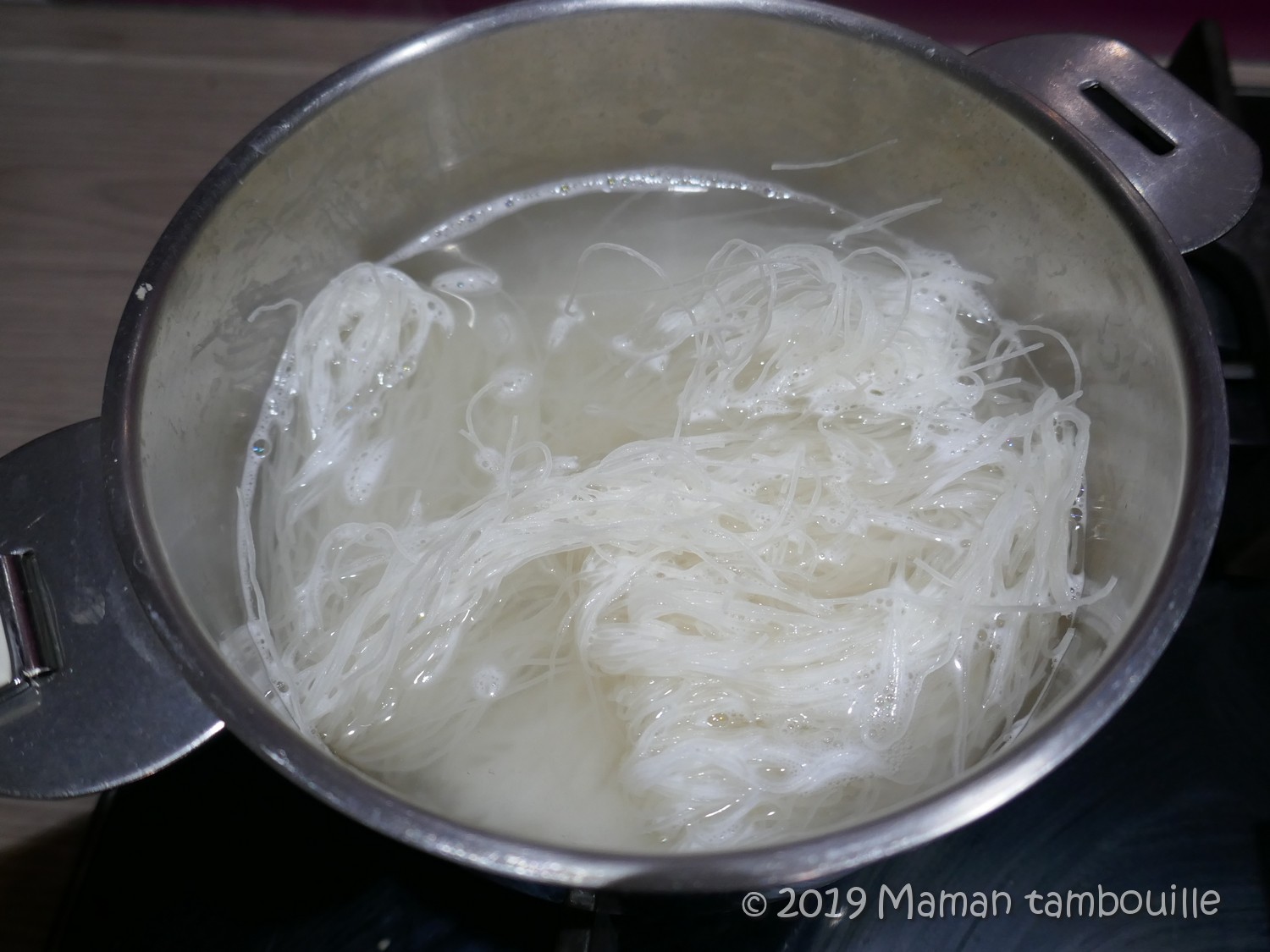 Cuire les vermicelles rapidement selon le mode d’emploi et égoutter.