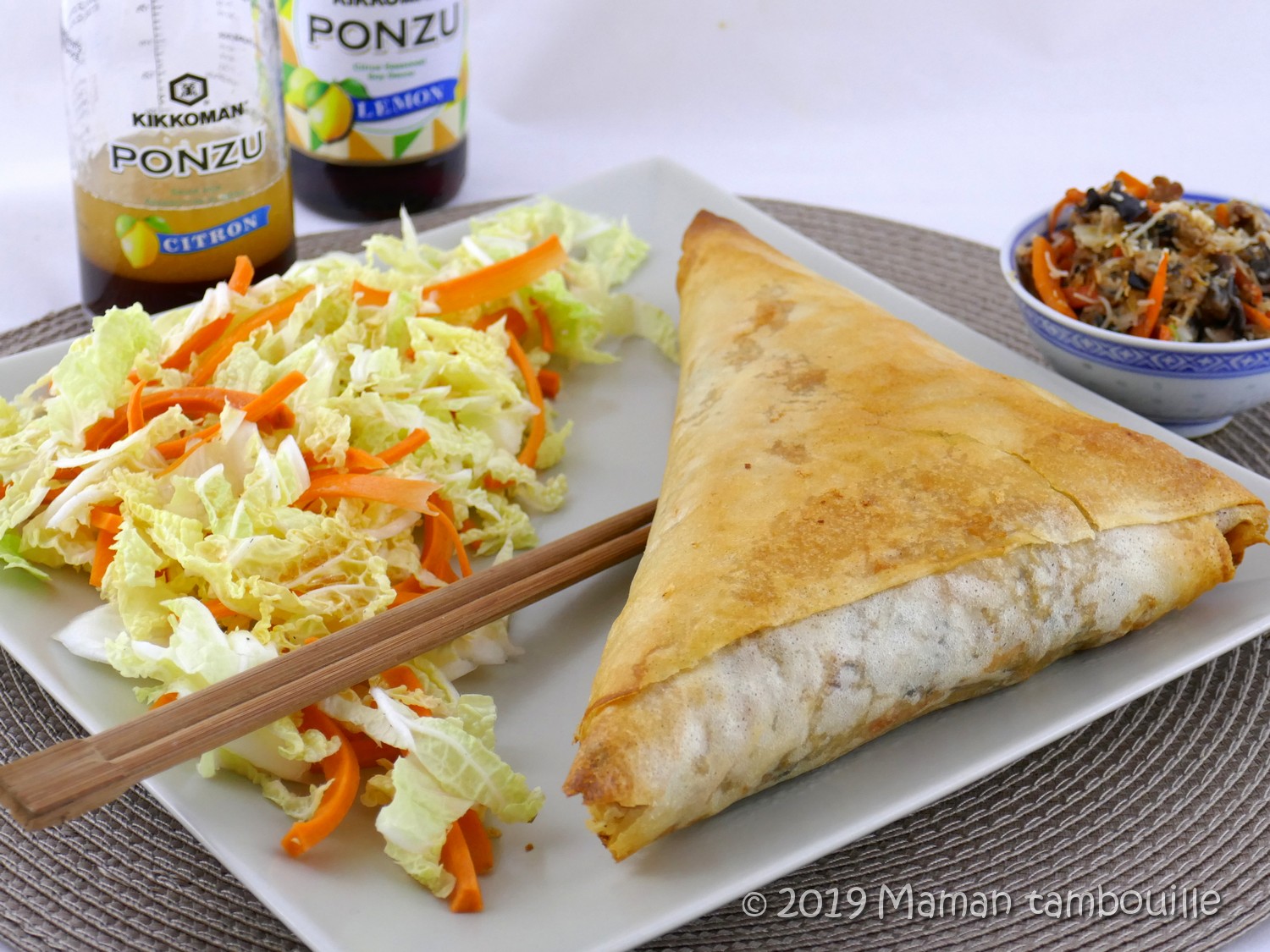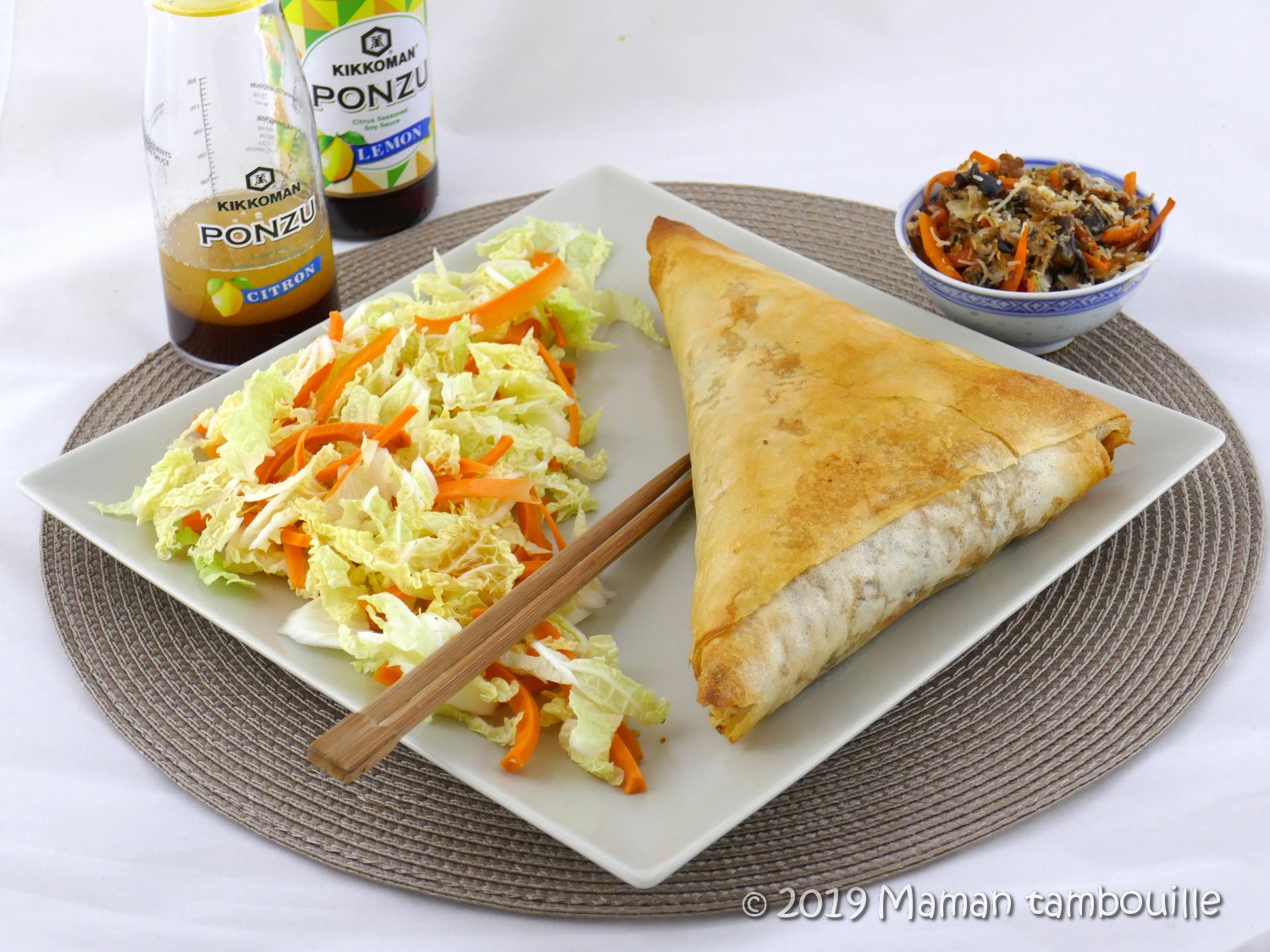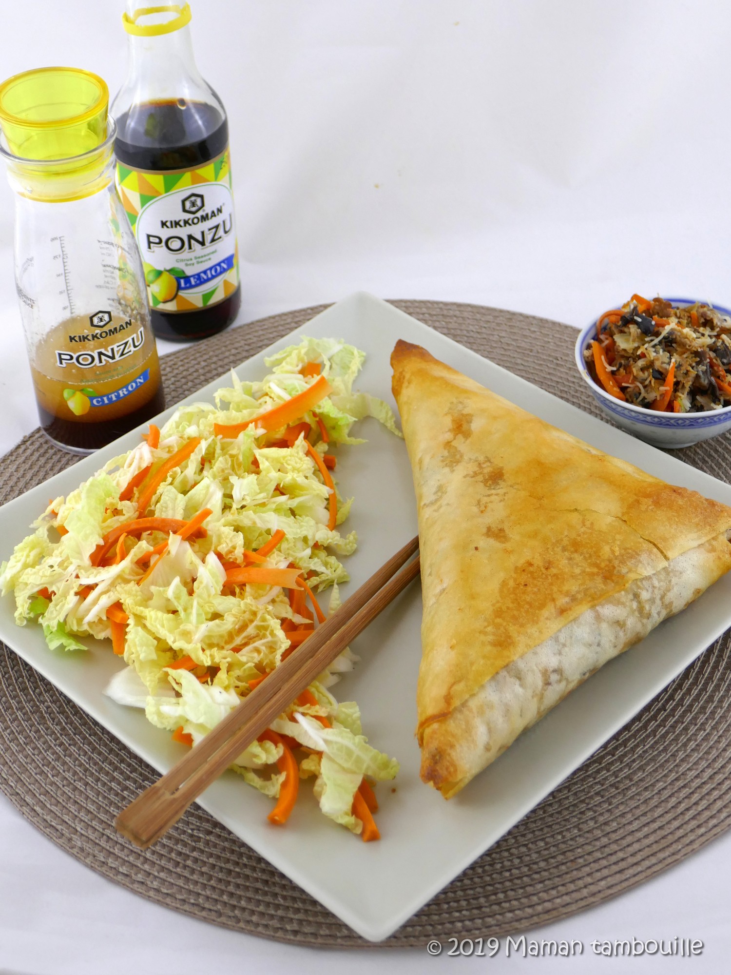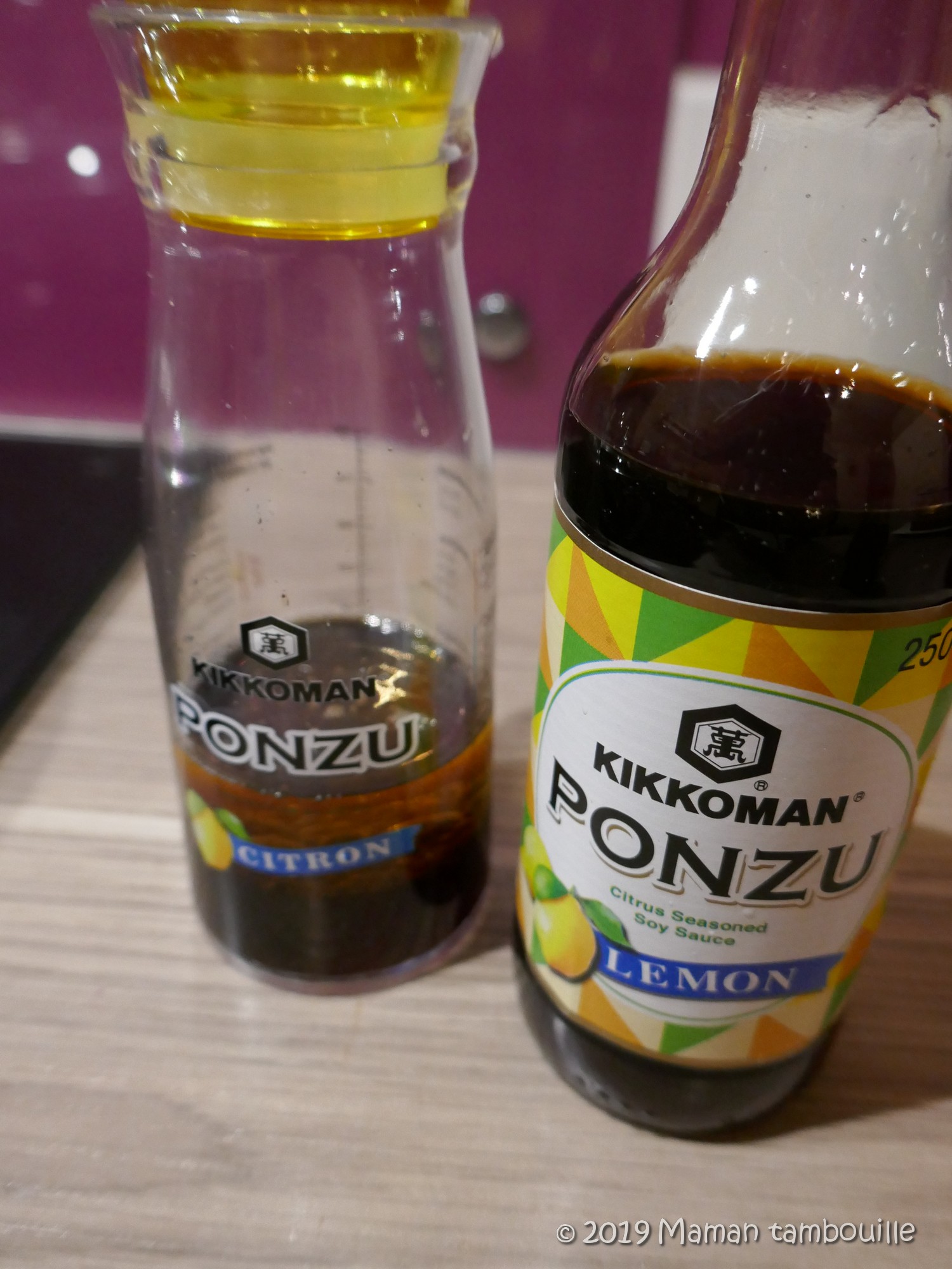 J’ai fait une vinaigrette avec la sauce Ponzu (soja citron de Kikkoman vraiment délicieuse) et de l’huile de sésame.