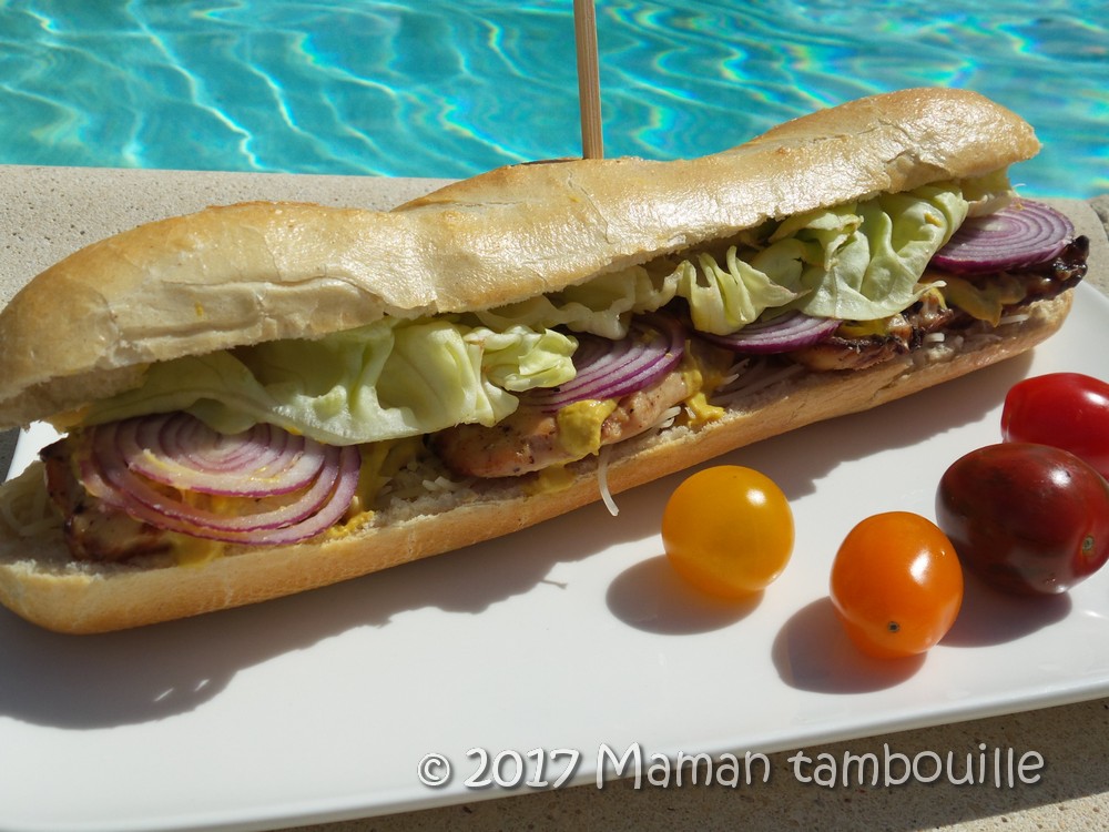 Bref, cette année, ils ont pu faire leur course sous le soleil et aussi faire leur pique nique. Evidemment, il a fallu improviser pour préparer un sandwich avec ce que j’avais sous la main parce que les gars, et ben ça s’organise toujours au dernier moment et ça te prévient le dimanche à 9h en partant qu’il repassera après la course chercher son casse croûte … que tu auras bien évidemment préparé, débrouille toi avec ça et merci maman. Alors voilà, j’ai sorti du poulet grillé, fromage, moutarde … sans oublier les oignons rouges, il en raffole, et comme ça je suis sûre qu’il n’ira pas courir les louloutes après le pique nique 😉