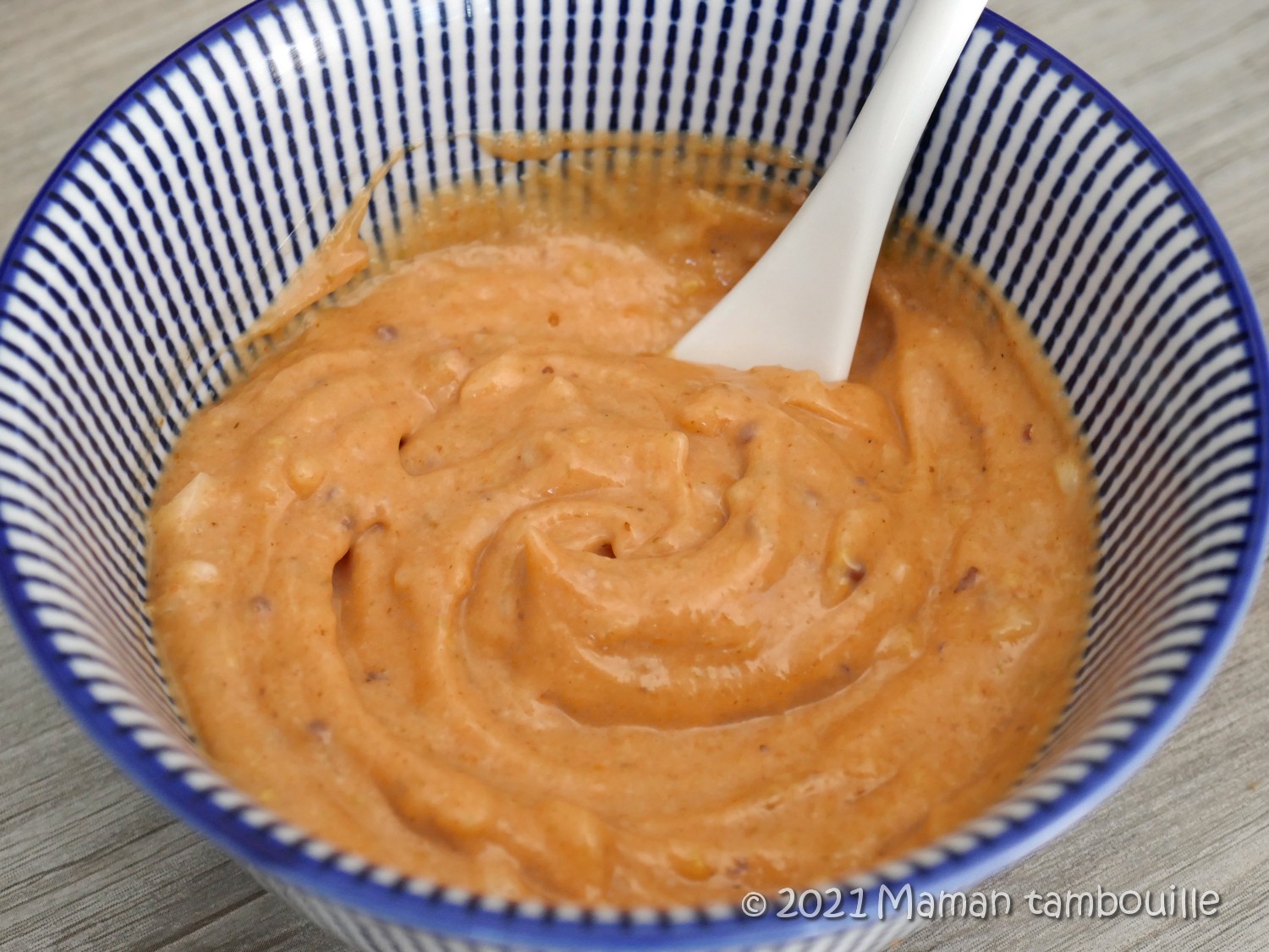 Mélanger, goûter puis ajuster la force en rajoutant de la pâte de piment par petites touches jusqu’à arriver au piquant voulu.