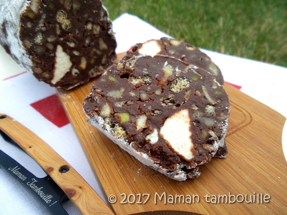 Des années que je dis qu’il faut que j’essaie de faire des saucissons au chocolat sans jamais prendre le temps ! Et pourtant, c’est facile et rapide, on y met un peu ce qu’on veut et le résultat est super sympa je trouve.