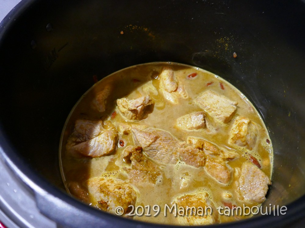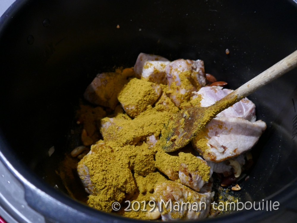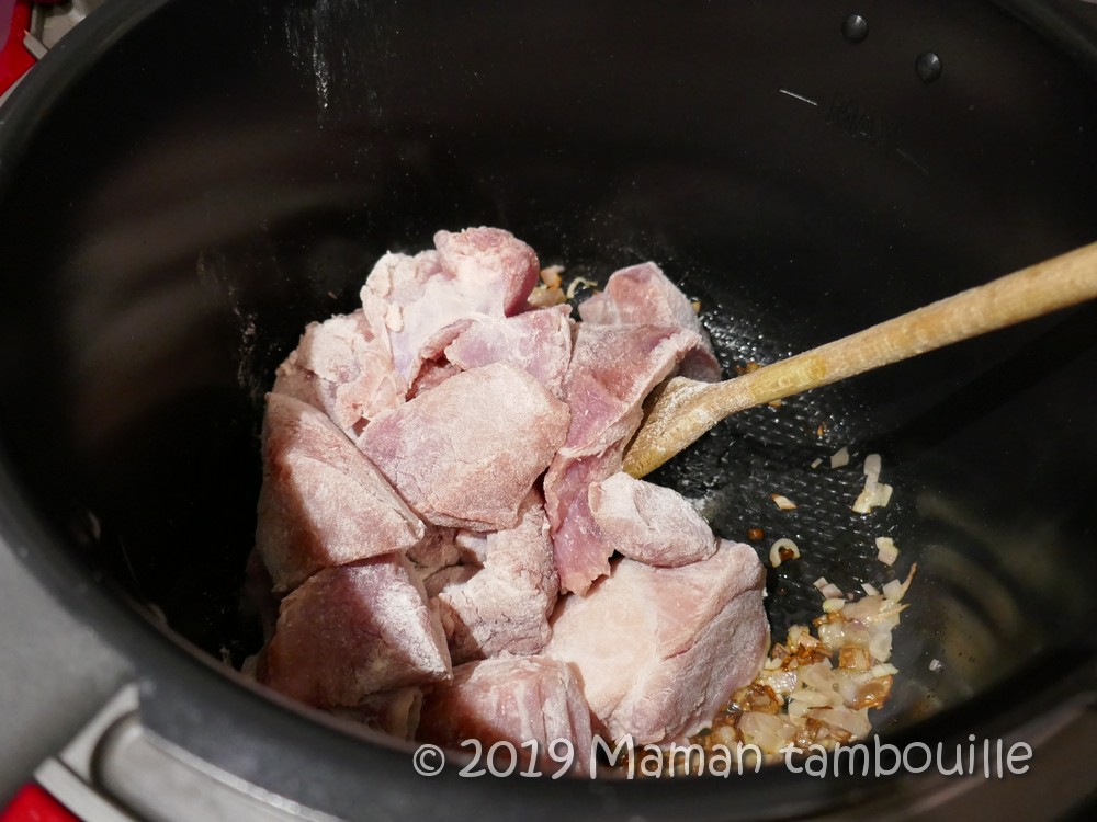 Ajouter le porc dans le cookeo en mode dorer. Mélanger pour le faire revenir sur toutes les faces.