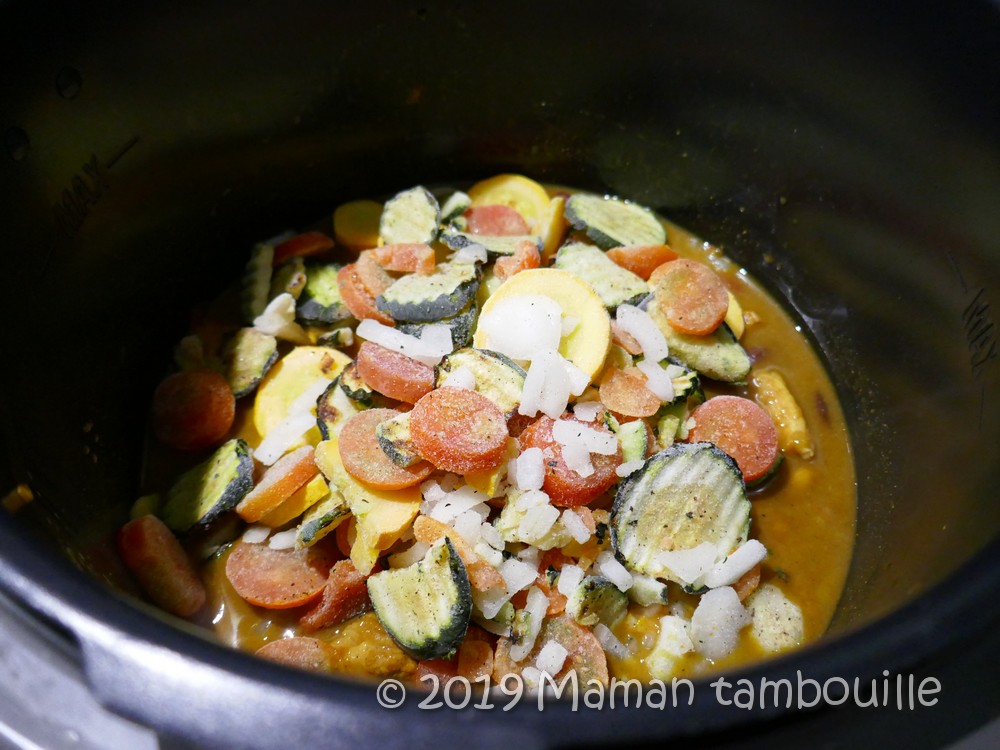 - 400g de légumes surgelés émincés (tomate, courgette …)