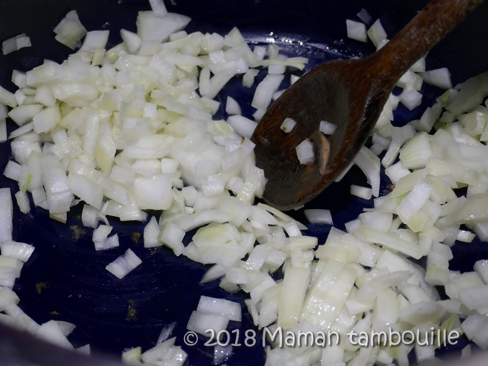 Faire revenir dans la cocotte l’oignon émincé avec un peu d’huile d’olive.
