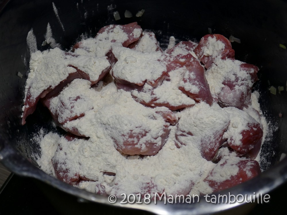 Faire revenir la viande sur toutes les faces puis saupoudrer avec la farine.