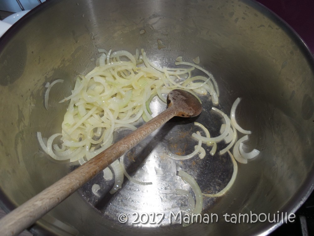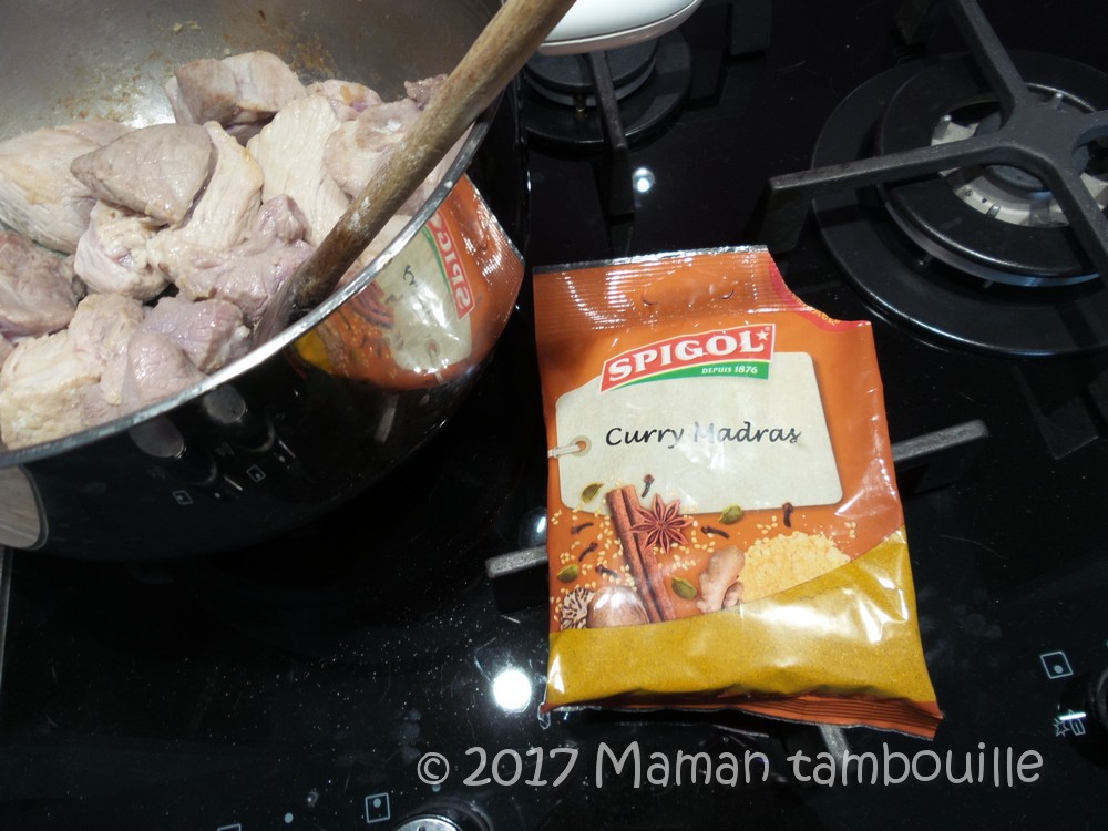 - 2 belles cuillères à café de curry en poudre (Spigol pour moi)
