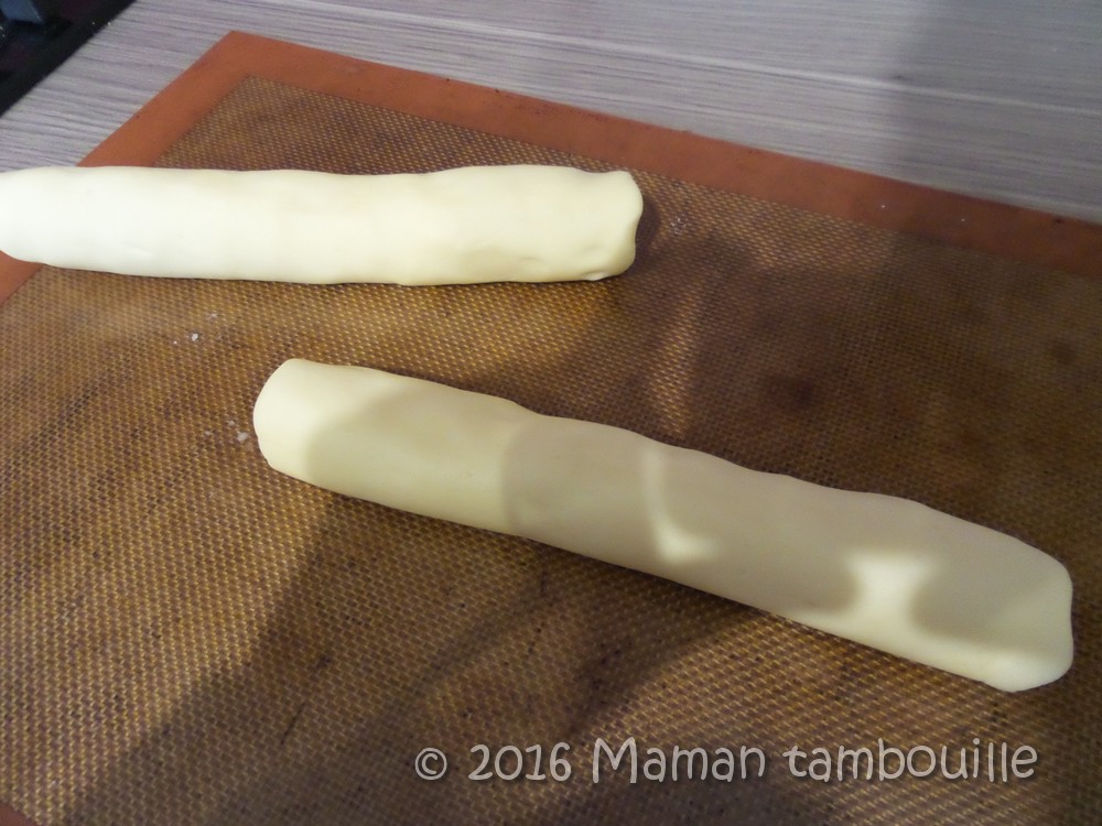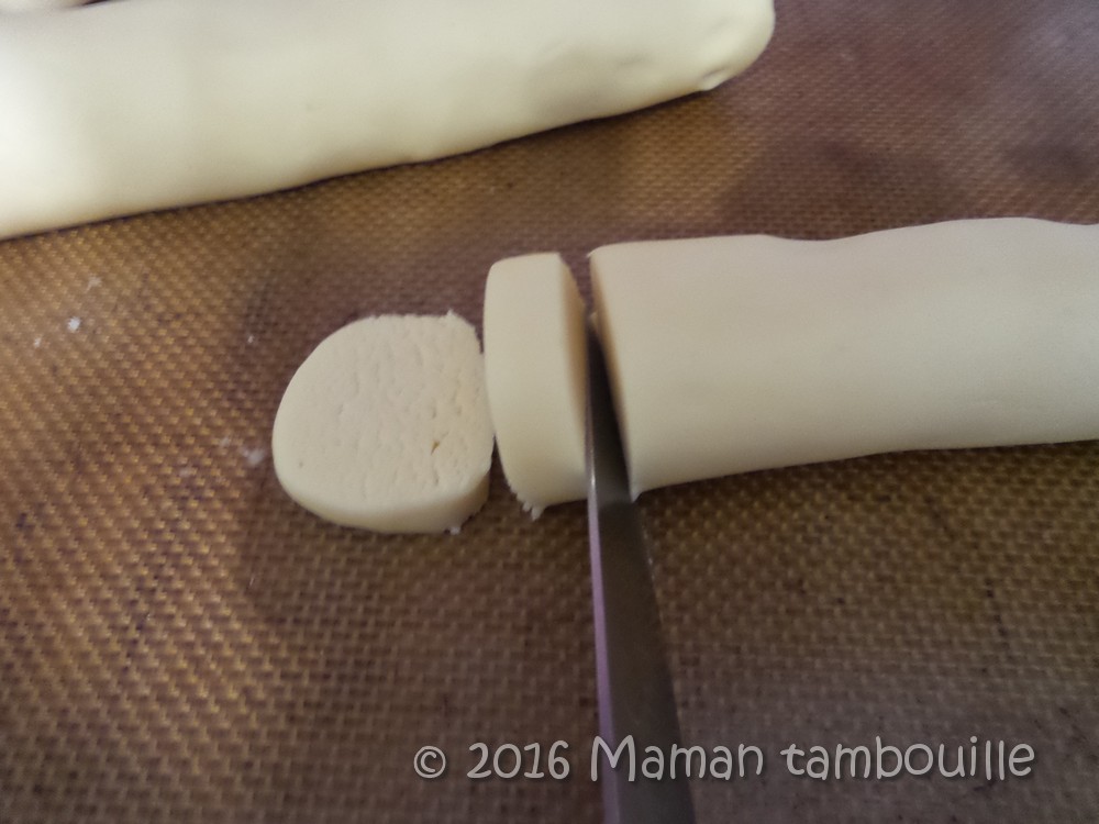 Couper des tranches de pâte d’un peu moins de 1cm d’épaisseur.