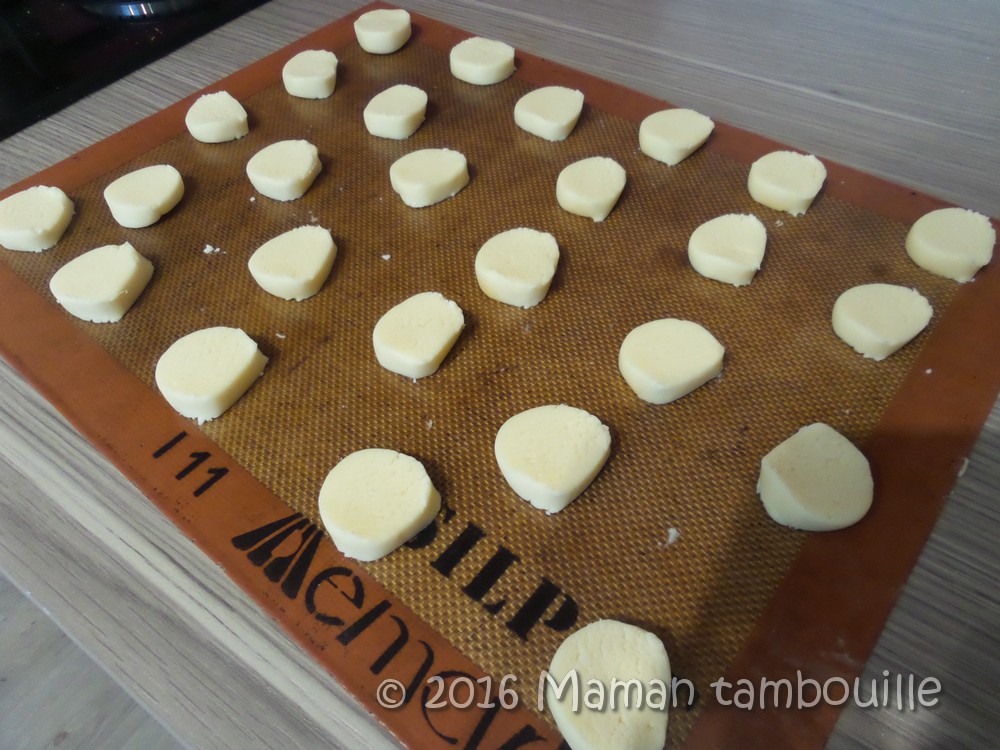 Enfourner 12min à 180°. Les biscuits doivent rester clairs. Ils durcissent en refroidissant !