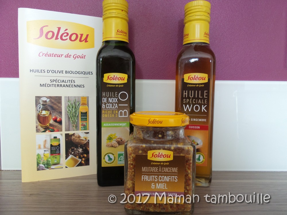 Je suis très contente du renouvellement de partenariat avec Soléou. Soléou est le spécialiste de l’huile d’olive Bio. La marque propose ainsi des huiles Bio mais également des huiles infusées, des moutardes, sels aromatisés, produits apéritifs