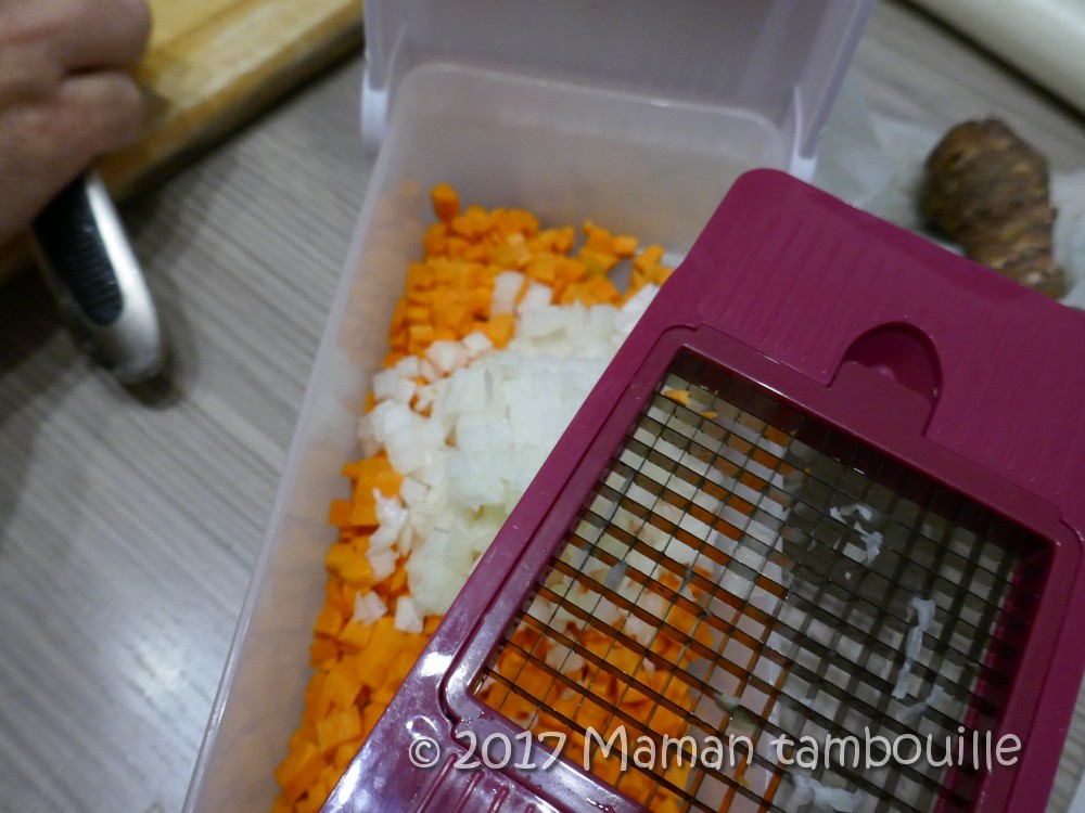 Couper tous les légumes en petits dés (au coupe légume pour moi).