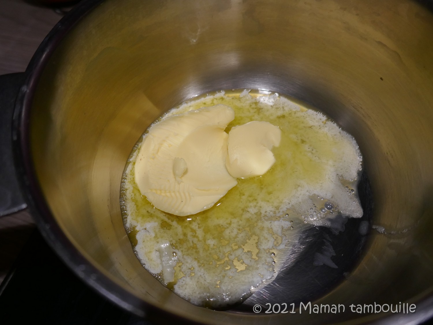 Pendant ce temps, faire fondre le beurre dans une petite casserole.