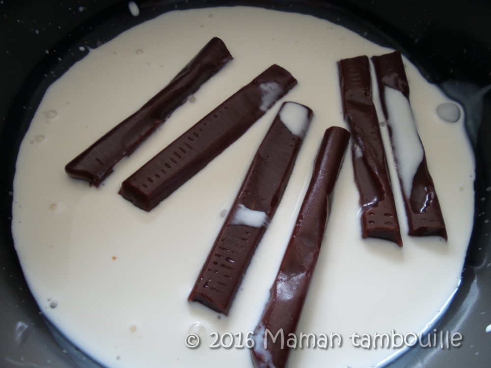 Préparer la sauce aux carambars en mettant ces derniers dans une casserole avec la crème. Chauffer à feu doux jusqu’à ce que les carambars soient fondus et bien mélanger.