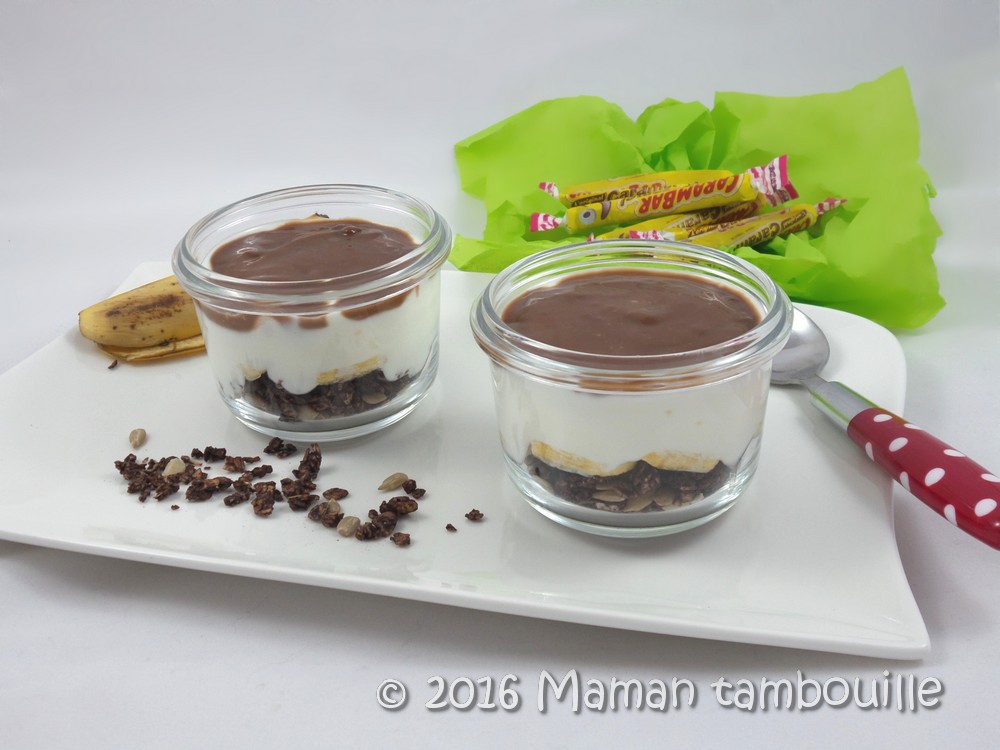 Un lit de céréales, des rondelles de bananes, du fromage blanc crémeux et une sauce gourmande aux carambars ! Nous, on a adoré, et vous, ça vous tente ?