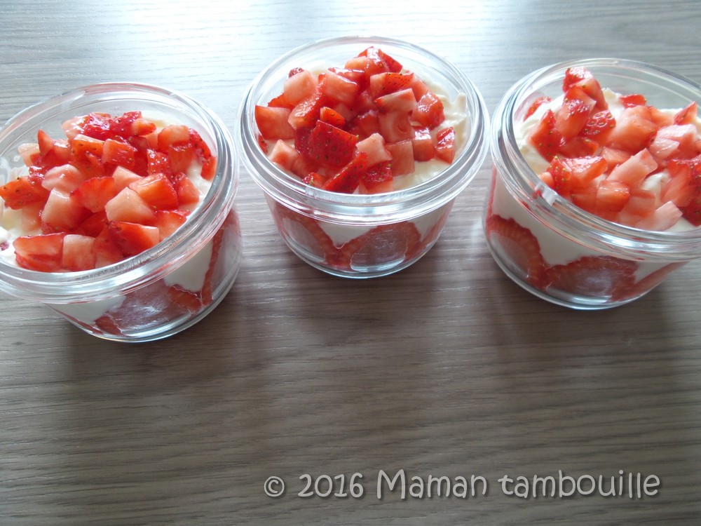 Ce dessert a eu beaucoup de succès chez Papa Tambouille et grand Tambouille. Pour ma part, je n’aime pas tellement les desserts avec de la crème fouettée alors celui-ci ne m’a pas beaucoup séduit … mais je ne l’avais fait pas pour moi de toutes façons 😉