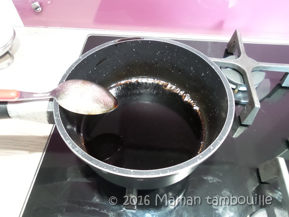 Mettre le balsamique avec l’agar agar dans une petite casserole. Bien mélanger puis porter à ébullition. Laisser cuire 2 min à partir de l’ébullition.