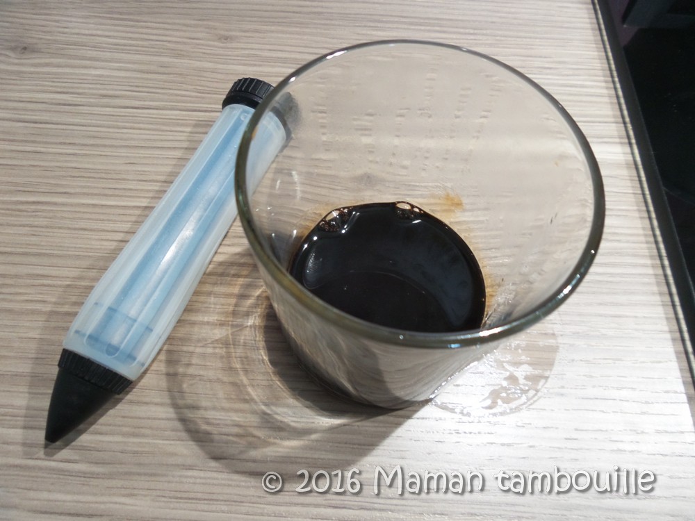 Sortir le verre d’huile. Prélever du balsamique avec une seringue.